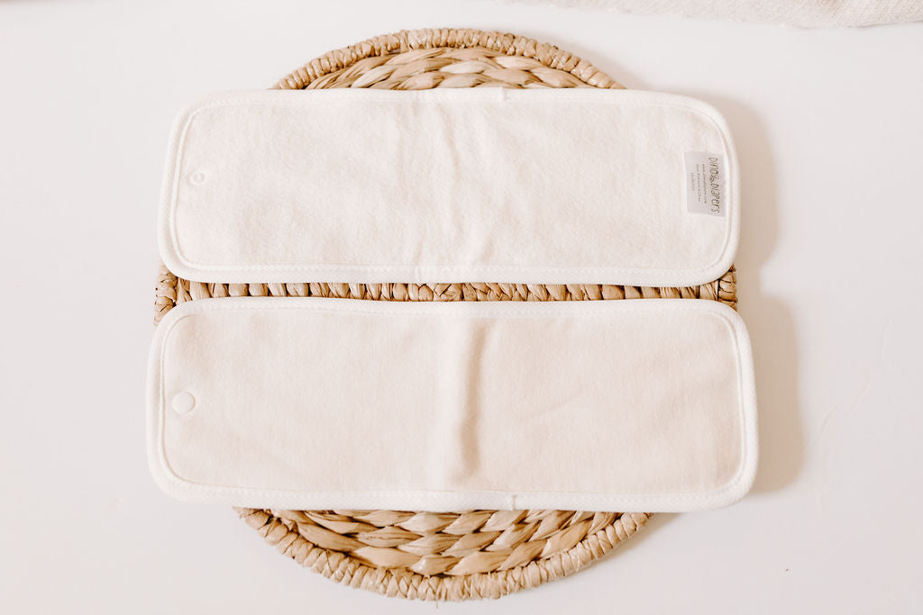 Our 4 layer inserts are perfect for cloth pocket diapers, covers, or as an added booster. These feature 4 thirsty layer of a Cotton/Hemp blend which is perfectly safe to have against your babe's skin. These inserts are highly absorbent and an extremely trim solution to use paired with our newborn covers.