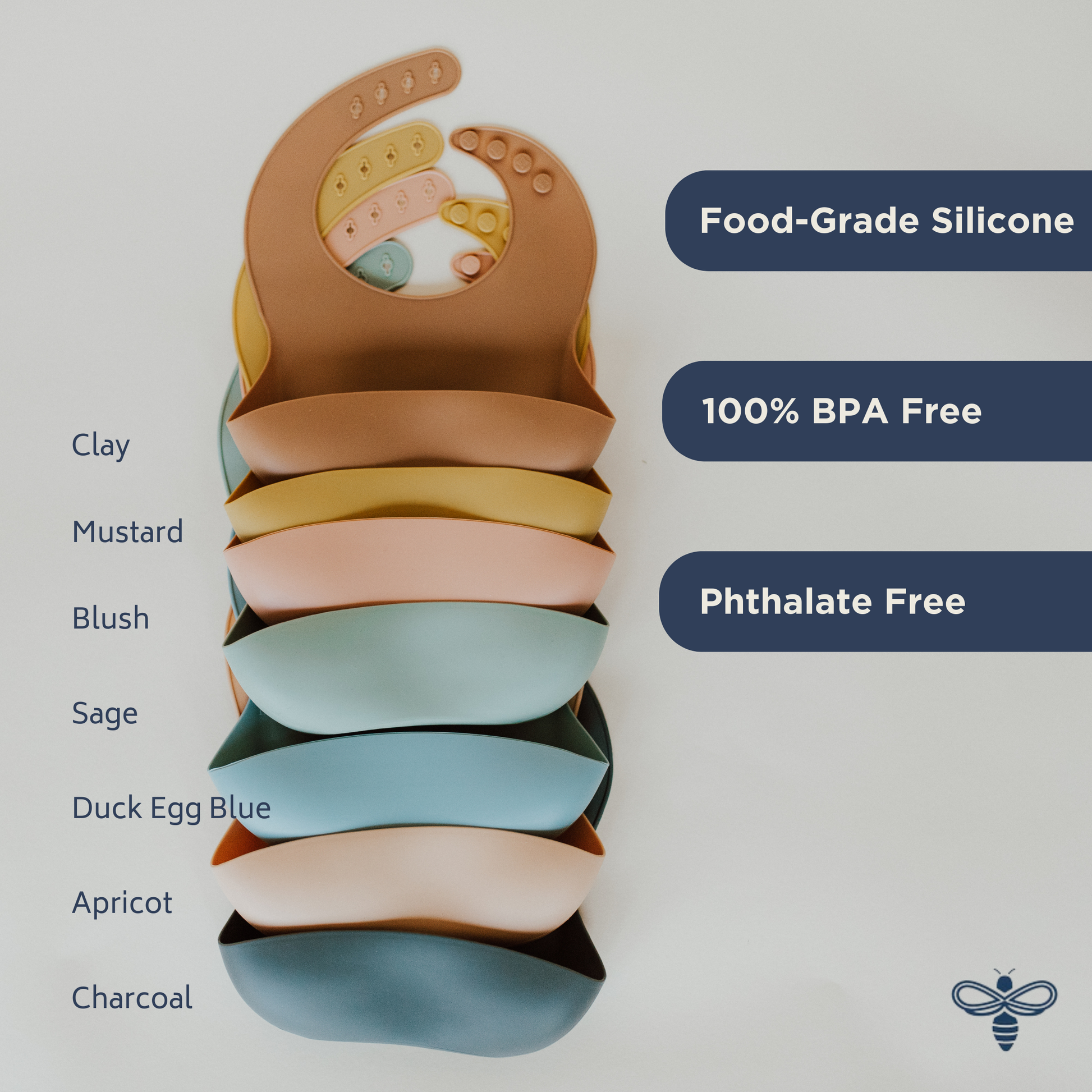 Made from food-grade silicone, these playful bibs are 100% BPA and phthalate free.