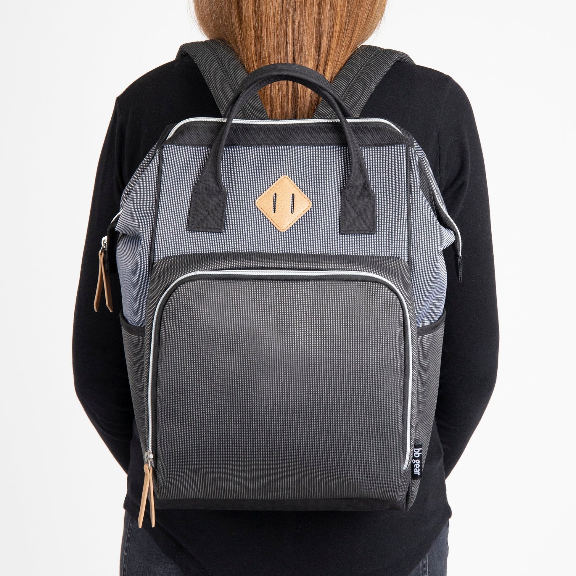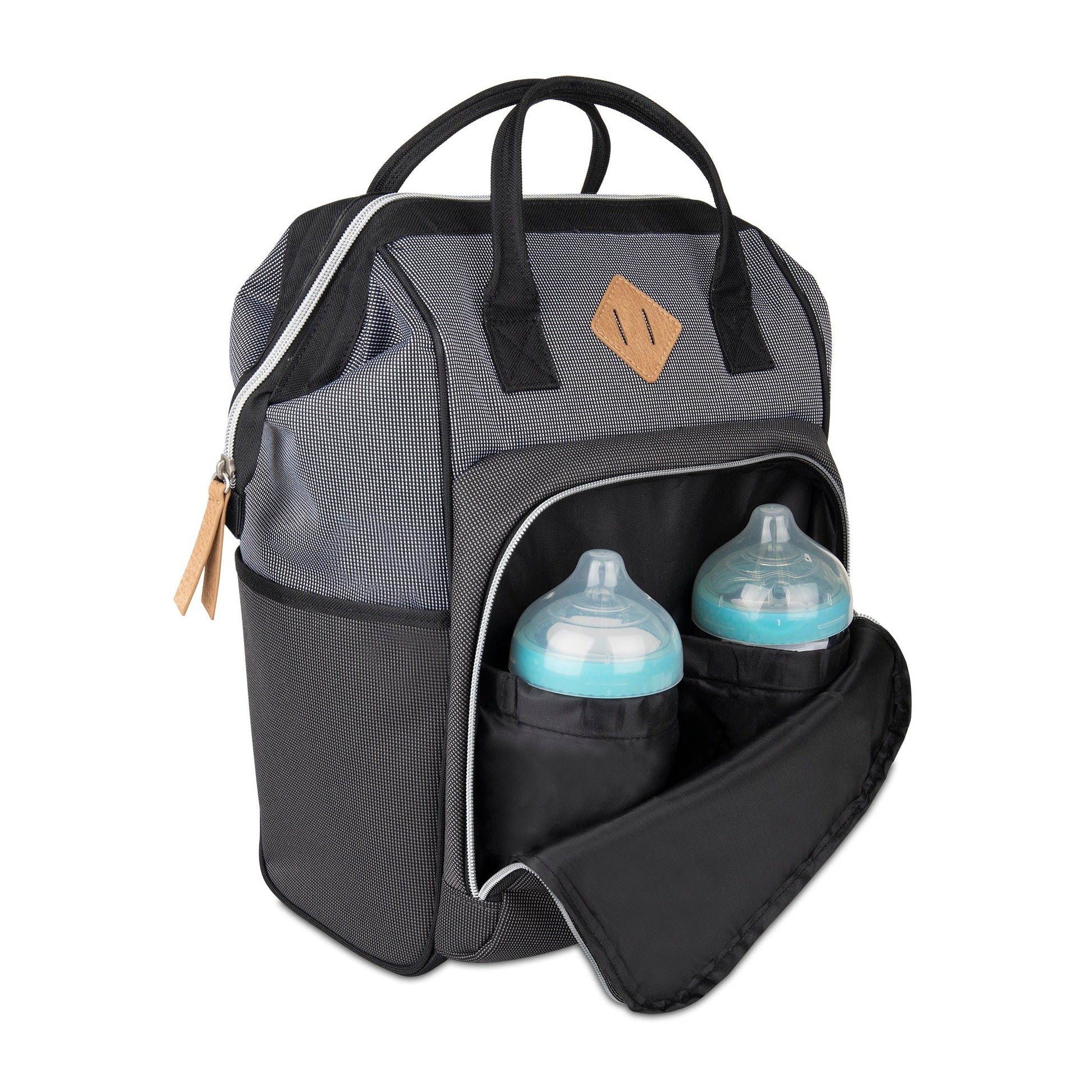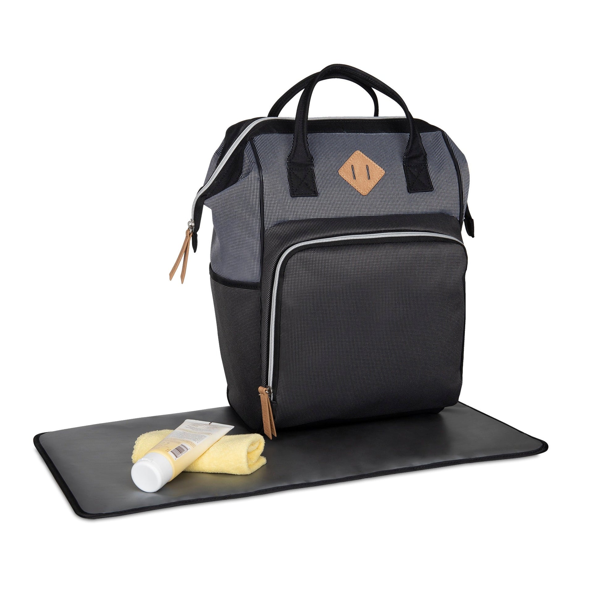 Baby Boom Gear - Clamshell Backpack Diaper Bag, Black, Gray, Tan