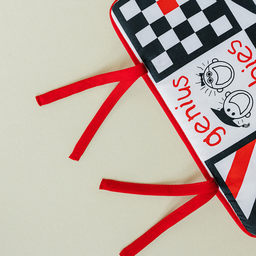 - Flip this baby mirror around to show your Genius Baby high contrast graphics in black, white and red graphics to help baby develop visual focus and tracking.