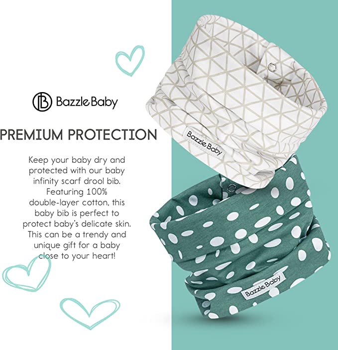 - Proprietary Infinity Scarf Design: The unique and patent-pending infinity scarf style offers a chic, modern look that stands out from typical baby bibs.