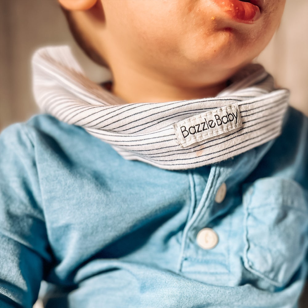 The BandoBib Infinity Scarf Bib 2-Pack from Bazzle Baby is a stylish and functional alternative to traditional bibs. Combining the look of a trendy scarf with the practicality of a drool bib, this innovative design keeps your baby dry and comfortable while adding a fashionable touch to any outfit.