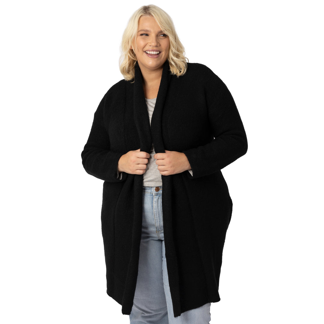Like wearing a hug. The perfect cozy sweater to complete your outfit, this high-quality, super-versatile knit cardigan is made from a soft, thick, fluffy yarn. It’s great for cuddling your little one on the couch, running errands, or going on a date night.