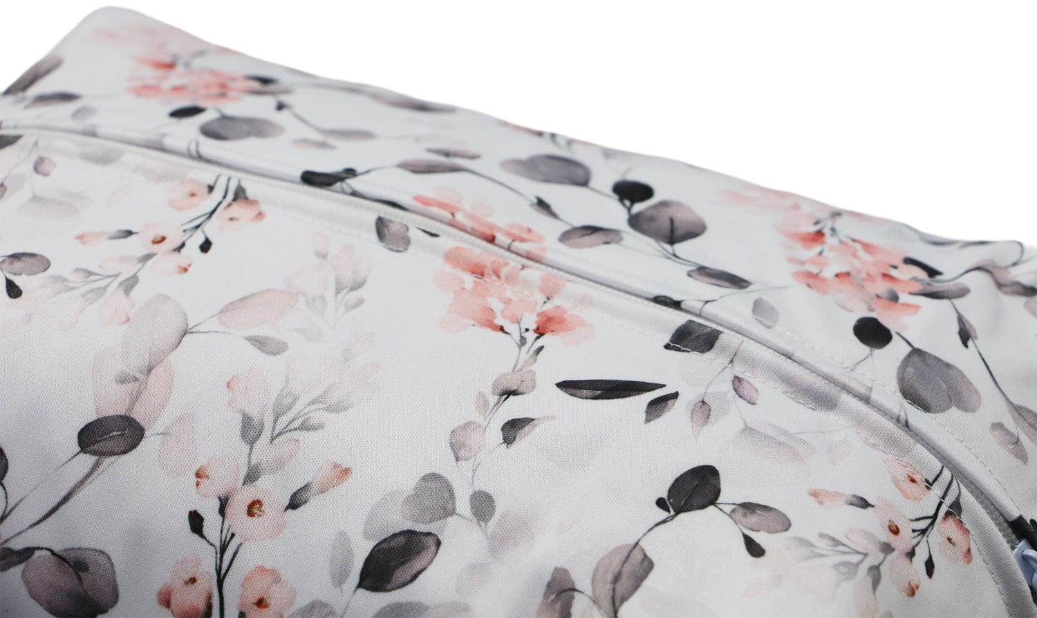 These diaper pods have two layers of PUL - solid white inside and a printed layer on the outside. There are loops on each side to attach a strap when needed plus a snap handle to carry with. A single zipper at the top.