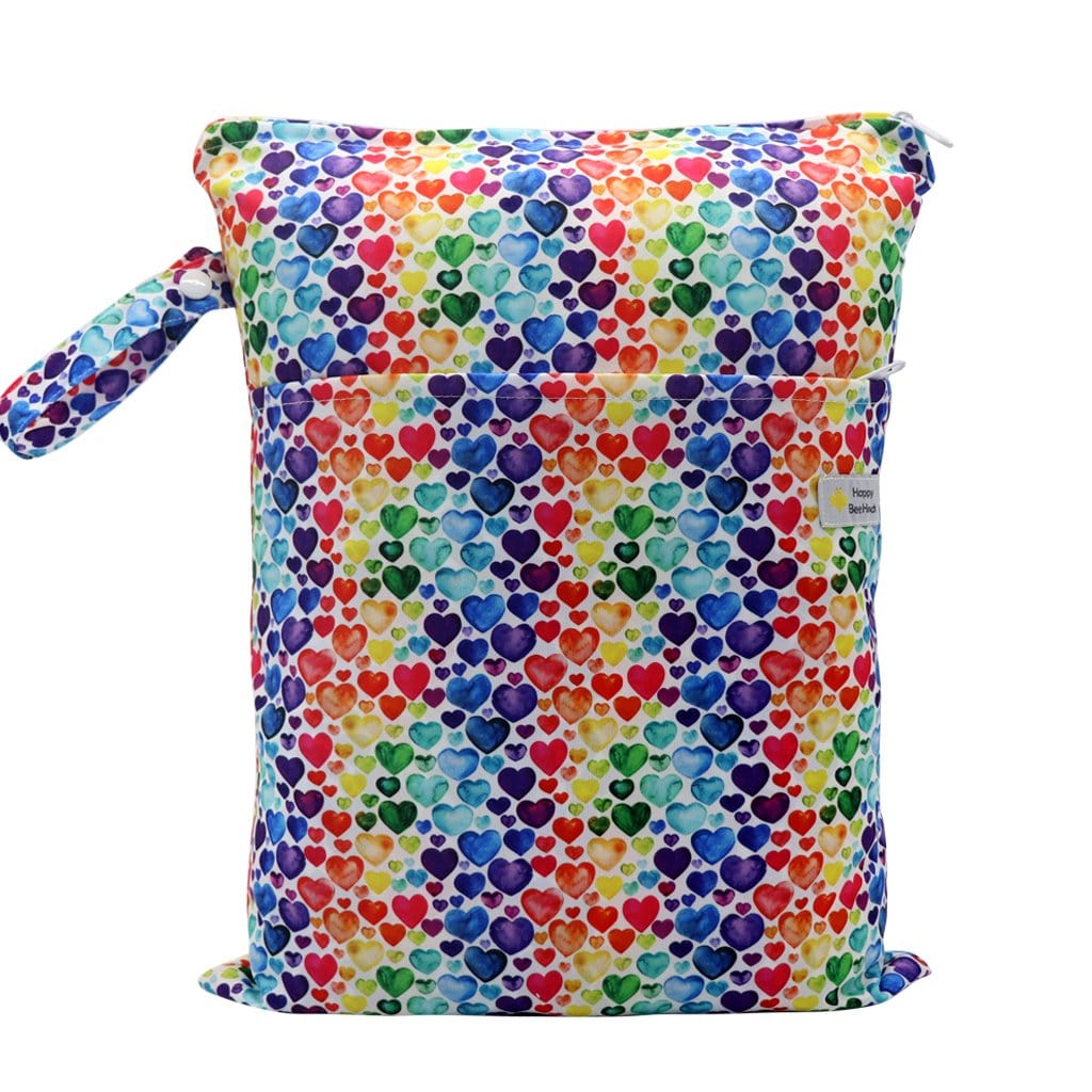 Double Pocket Wet Bag by Happy BeeHinds - Colorful Hearts