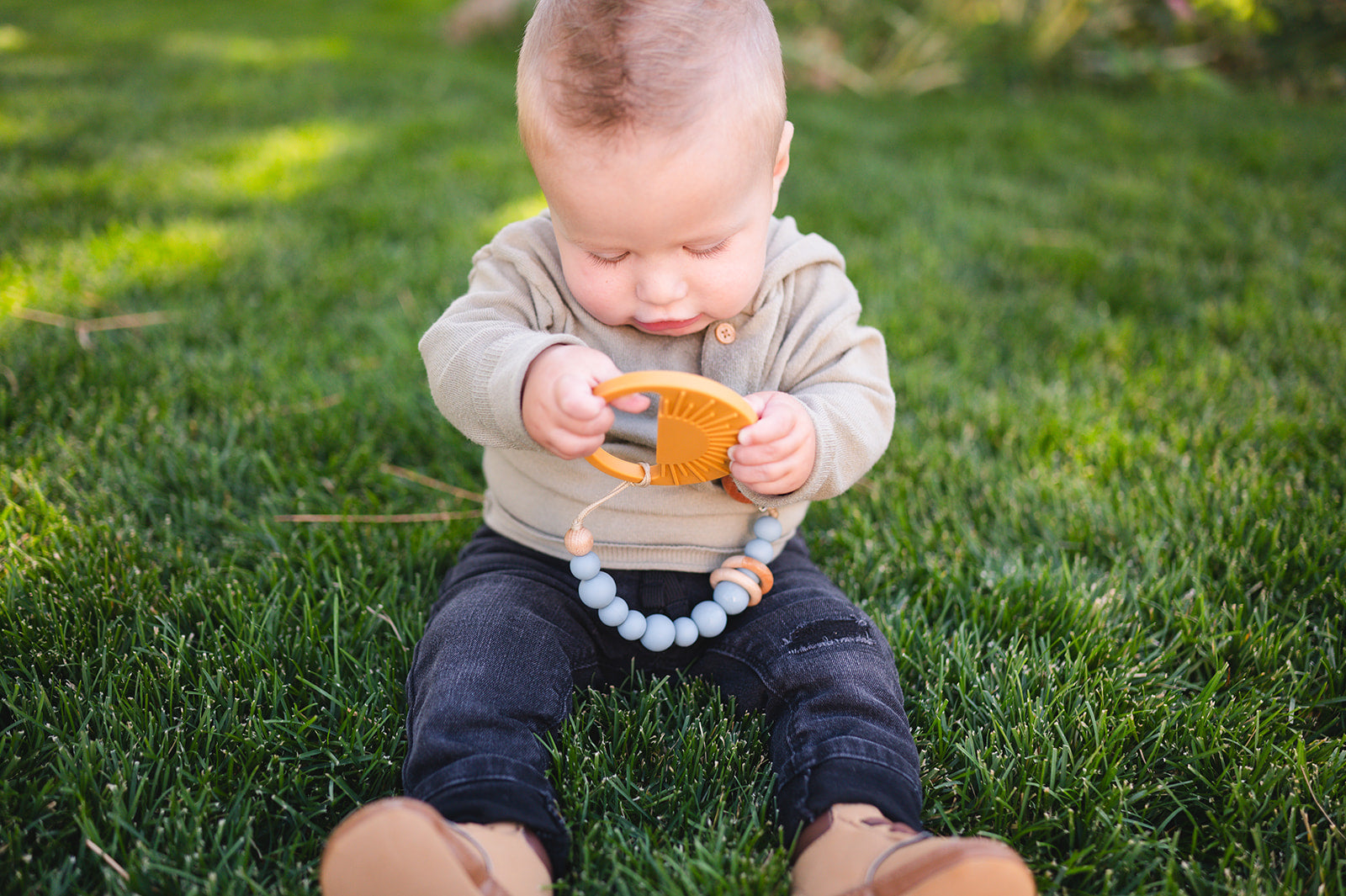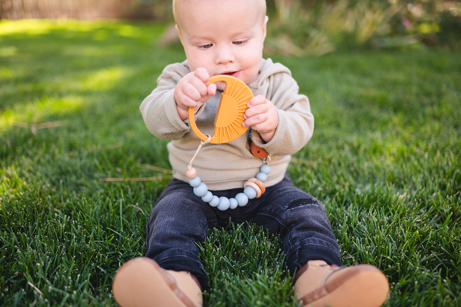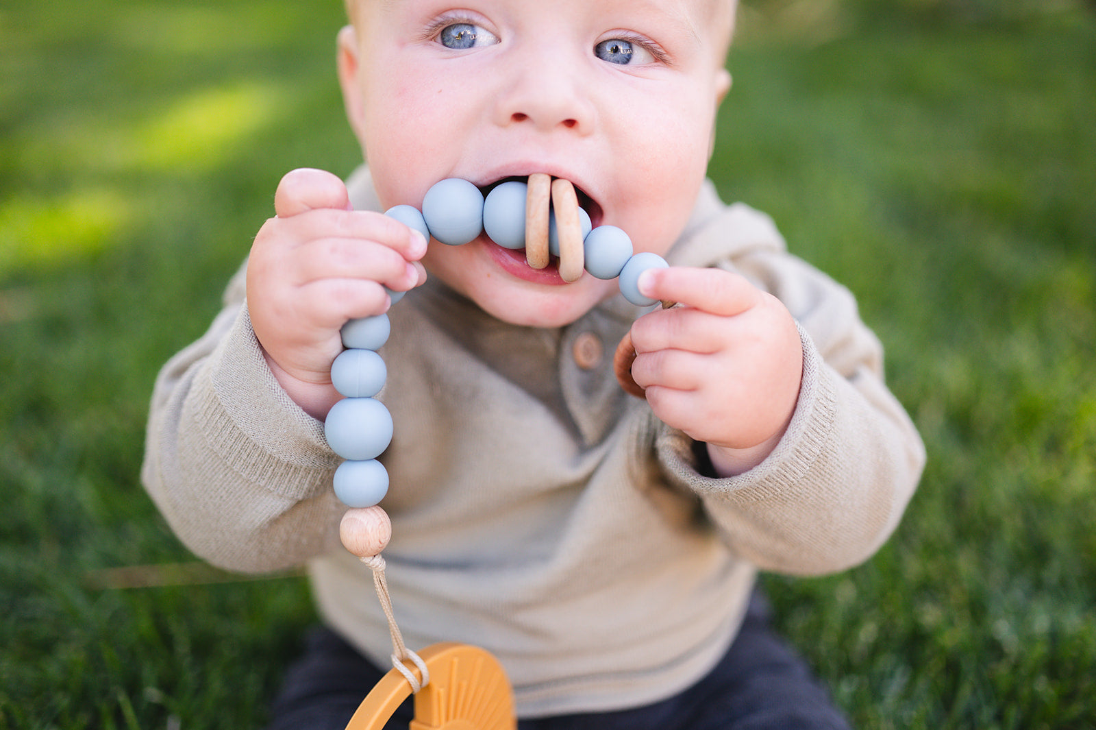 What's Included: 1 Silicone Bead & Wood Ring Pacifier Clip