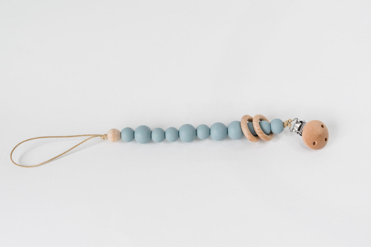Duck Egg Blue Silicone Bead & Wood Ring Pacifier Clip
