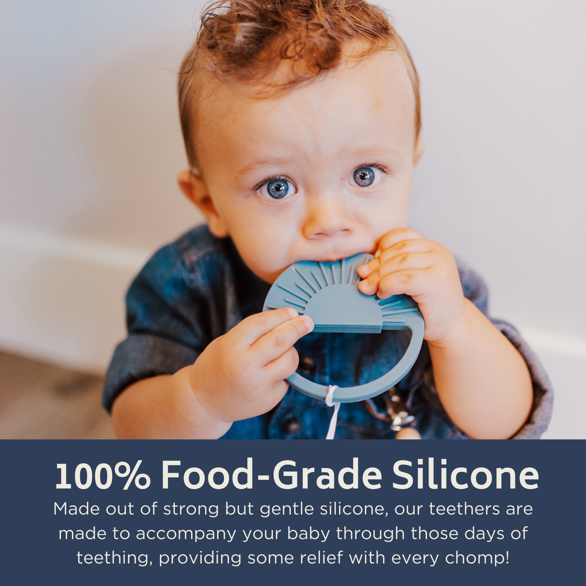 Babies love chewing on the fun shapes of this light, easy to grip teething toy. Choose from beautiful colors colors to incorporate this adorable, sunburst teething toy into your little one's toy collection. These teethers are enticing for even pre-verbal babies. Made out of strong but gentle silicone, our teethers are made to accompany your baby through those days of teething, providing some relief with every chomp!