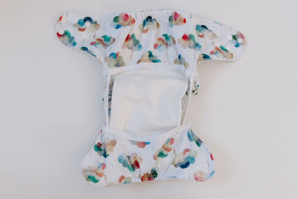 - Tummy Elastic, Hip Snaps, and 4 Rows of Rise Snaps to Obtain the Perfect Fit