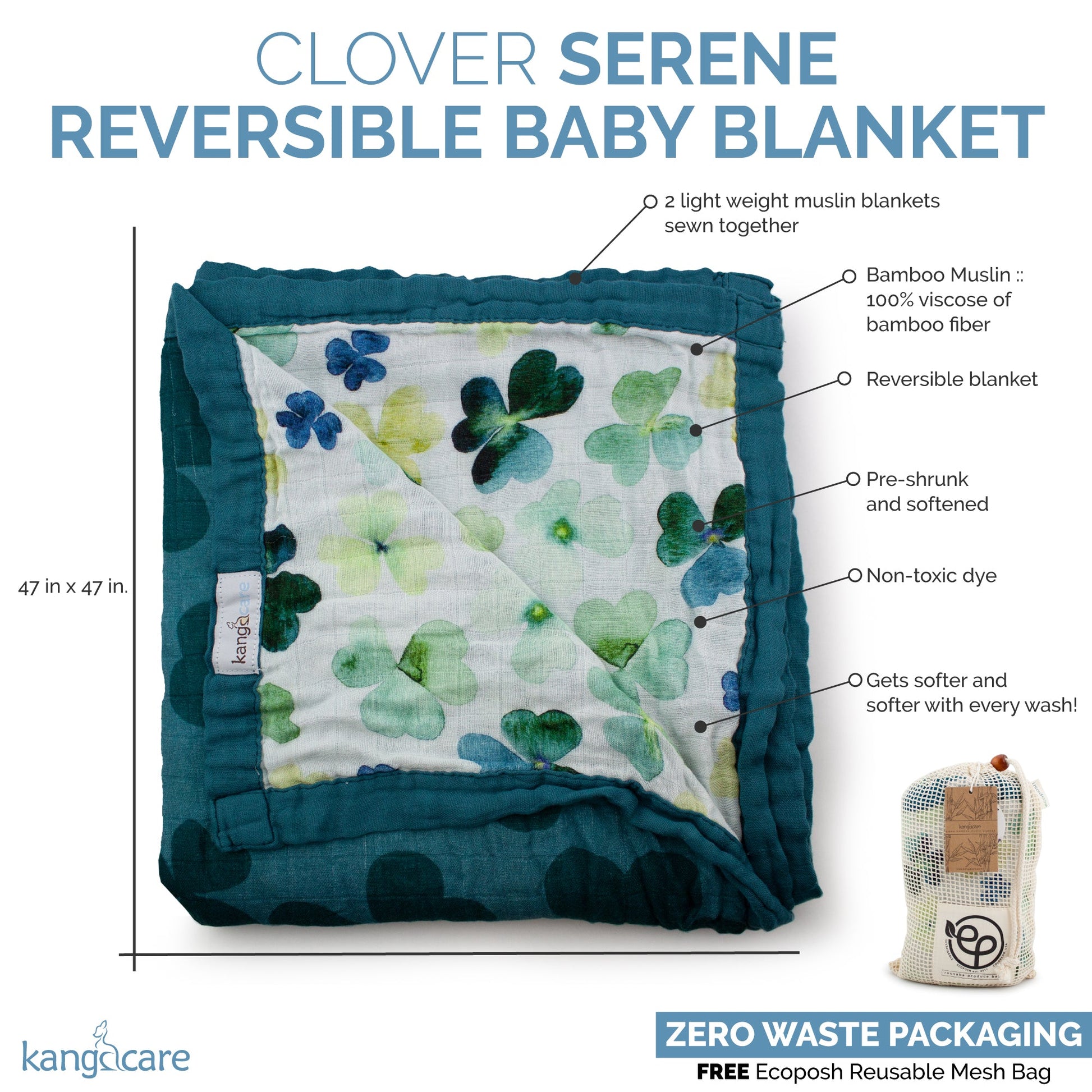 Kanga Care Bamboo Muslin Blanket - Baby: Clover (reversible)