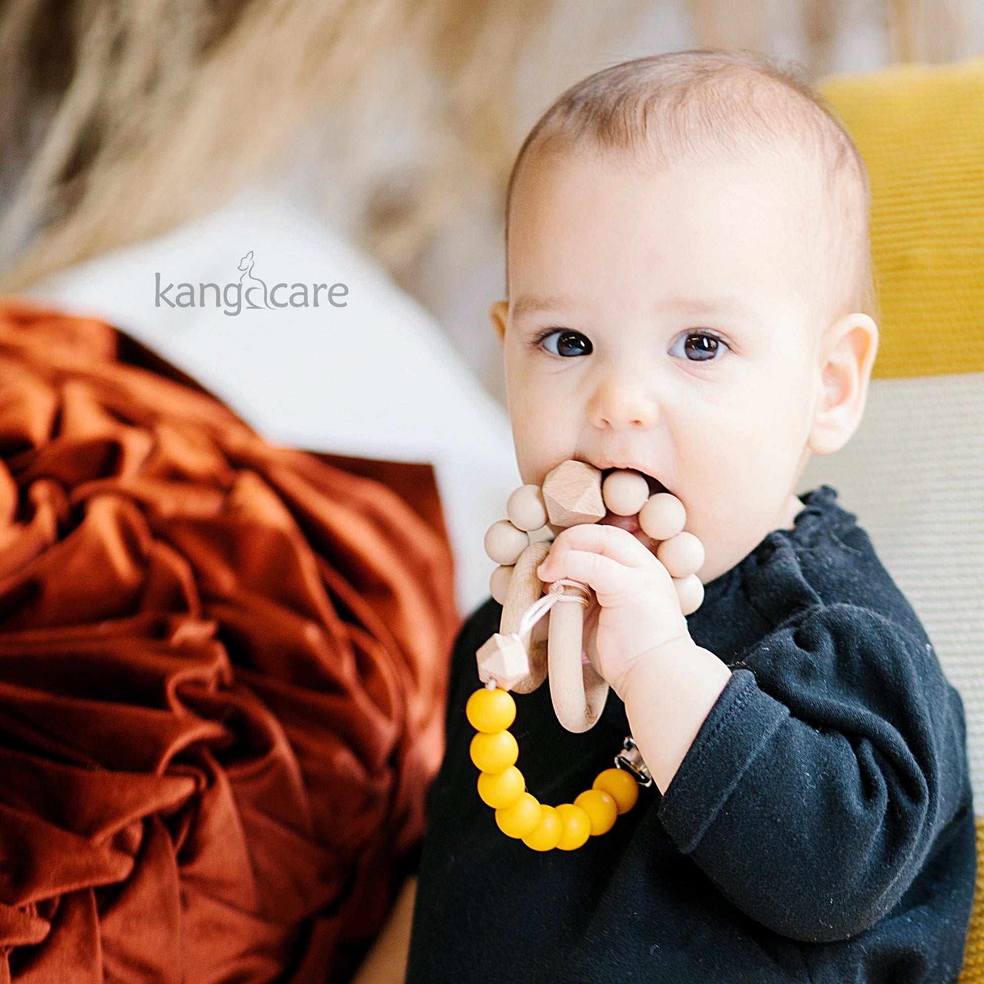 Kanga Care Silicone & Wood Paci Clip - Saffron