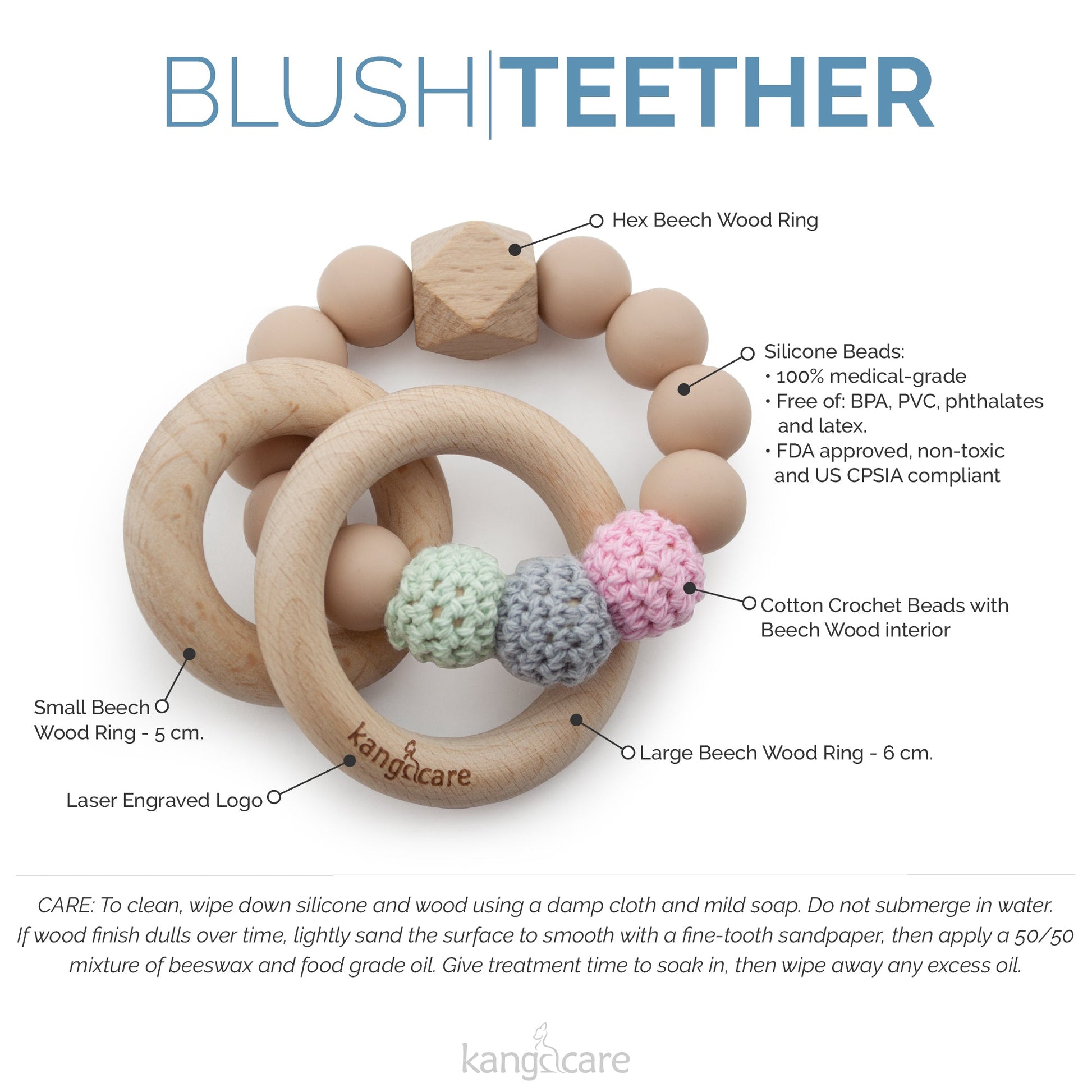 Kanga Care Silicone & Wood Teething Ring - Crocheted - Blush