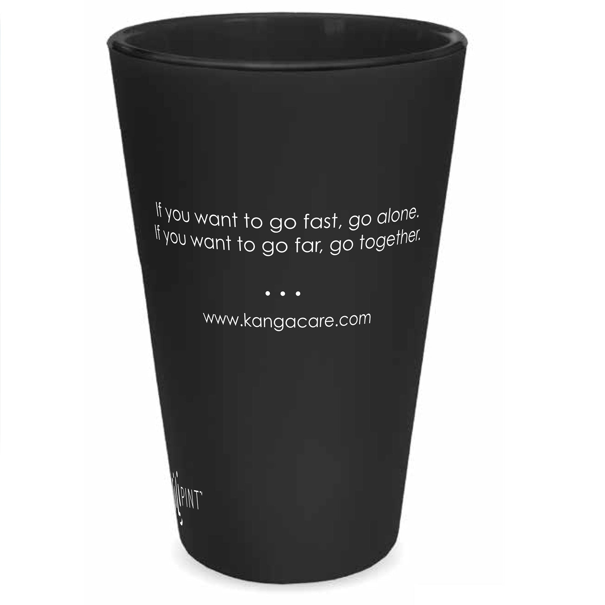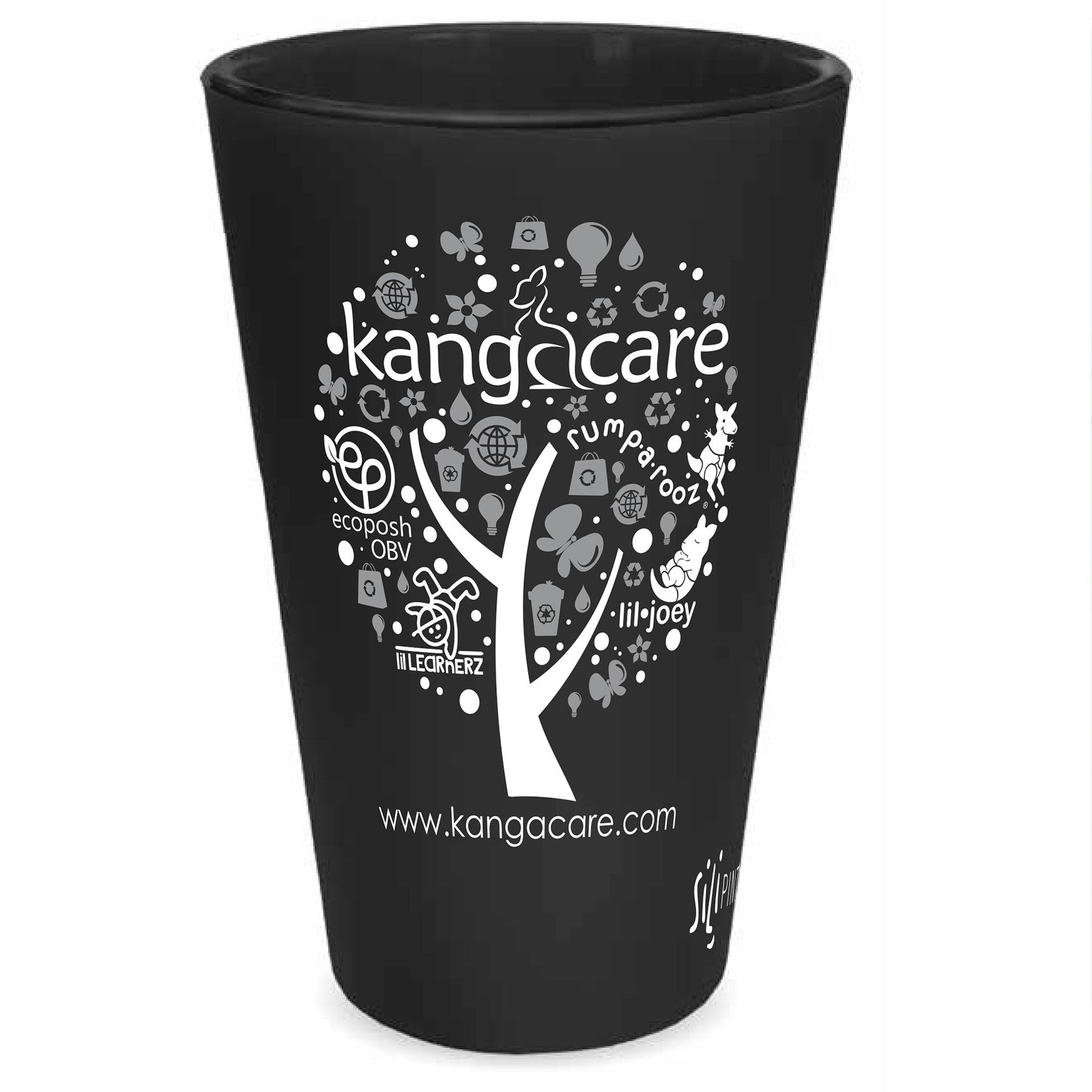 Black Kanga Care 16oz. SiliPint glass. Cloth diaper love, right on your drinking glass! From the house to the school pick up line, beach vacation or family getaway, these colorful, versatile drinking glasses are as flexible in shape as they are in utility.