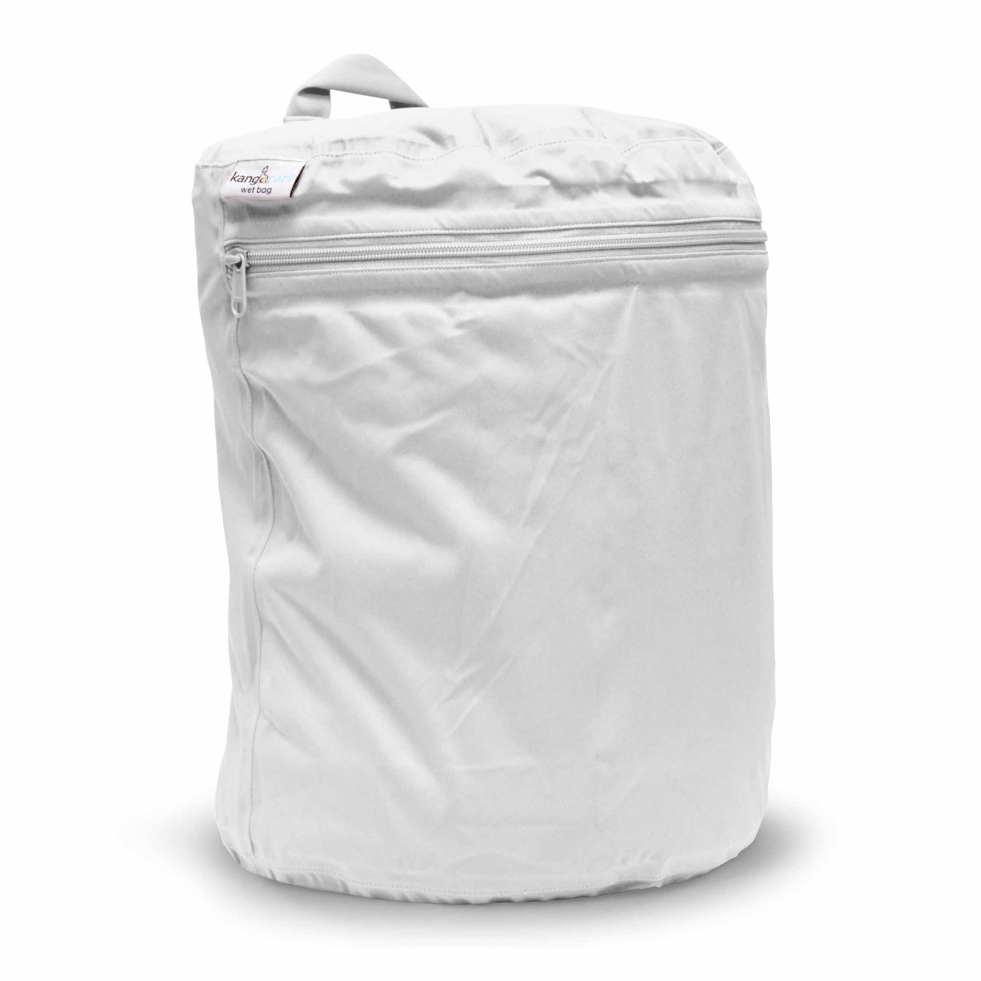 Introducing Fluff wet bag - A classic, simple, white cloth diapering color. Kanga Care Wet Bags are a standard size wet bag, except instead of being flat (like an envelope), they are HALF MOON shaped to allow more volume. This design is EXCLUSIVE to Kanga Care. This wet bag will hold up to 12 to 15 diapers and inserts. The Kanga Care Wet Bags have color matching, heavy duty zippers that are easy to grab. The zipper is placed on the front so the top of the bag functions as a lid. There is a strap on top that can be opened by an industrial strength snap so that the bag can be attached to a stroller handle, door knob, or other ideal hanging place. To clean, machine wash with your diapers or other soiled items. Tumble dry low or hang dry. Visit www.kangacare.com for further information. Kanga Care uses a water resistant polyester TPU which is solvent-free polyester fabric that has been laminated with a thermoplastic polyurethane using a heat bonding process, not chemicals. This process is low in toxicity and is better for the natural environment then traditional PUL.