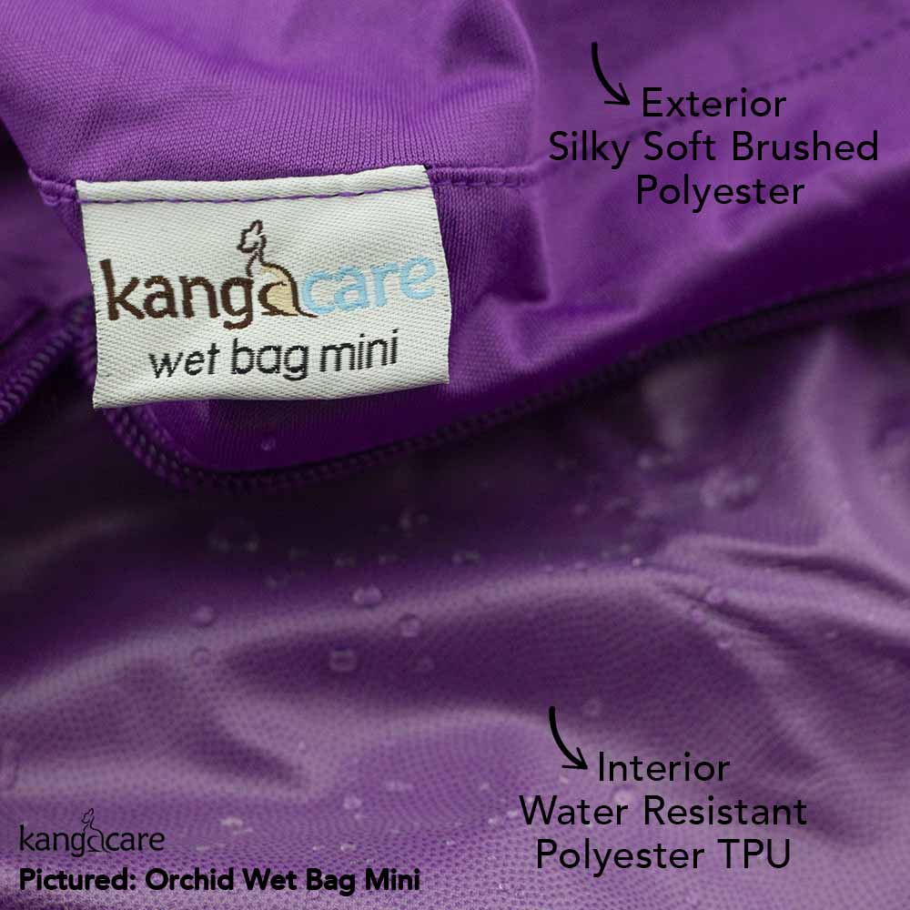 Introducing Aquarius Wet Bag Mini - A classic, simple, blue color. The Kanga Care Wet Bag Mini (and Regular Wet Bag) is your new best friend! It is HALF MOON shaped to allow more volume. This design is EXCLUSIVE to Kanga Care. This wet bag will hold up to 6 to 8 diapers and inserts. The Kanga Care Wet Bags have color matching, heavy duty zippers that are easy to grab. The zipper is placed on the front so the top of the bag functions as a lid. There is a strap on top that can be opened by an industrial strength snap so that the bag can be attached to a stroller handle, door knob, or other ideal hanging place. To clean, machine wash with your diapers or other soiled items (turn inside out). Tumble dry low (turn bag right-side-out) or hang dry. Visit www.kangacare.com for further information. Kanga Care uses TPU laminate in waterproof products. Our TPU laminate is heat bonded to our fabric using an eco-glue which is solvent-free and ground water safe. This process is low in toxicity and is better for the natural environment than traditional PUL.