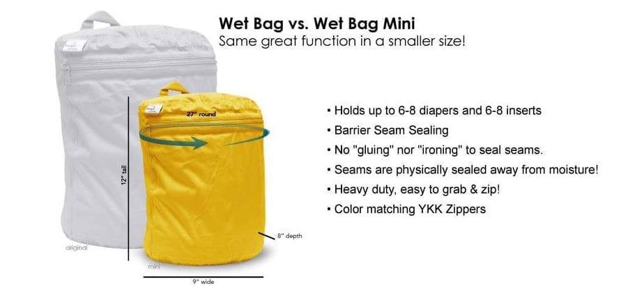 The Kanga Care Wet Bag Mini (and Regular Wet Bag) is your new best friend! It is HALF MOON shaped to allow more volume. This design is EXCLUSIVE to Kanga Care. This wet bag will hold up to 6 to 8 diapers and inserts. The Kanga Care Wet Bags have color matching, heavy duty zippers that are easy to grab. The zipper is placed on the front so the top of the bag functions as a lid. There is a strap on top that can be opened by an industrial strength snap so that the bag can be attached to a stroller handle, door knob, or other ideal hanging place. To clean, machine wash with your diapers or other soiled items (turn inside out). Tumble dry low (turn bag right-side-out) or hang dry. Visit www.kangacare.com for further information. Kanga Care uses TPU laminate in waterproof products. Our TPU laminate is heat bonded to our fabric using an eco-glue which is solvent-free and ground water safe. This process is low in toxicity and is better for the natural environment than traditional PUL.