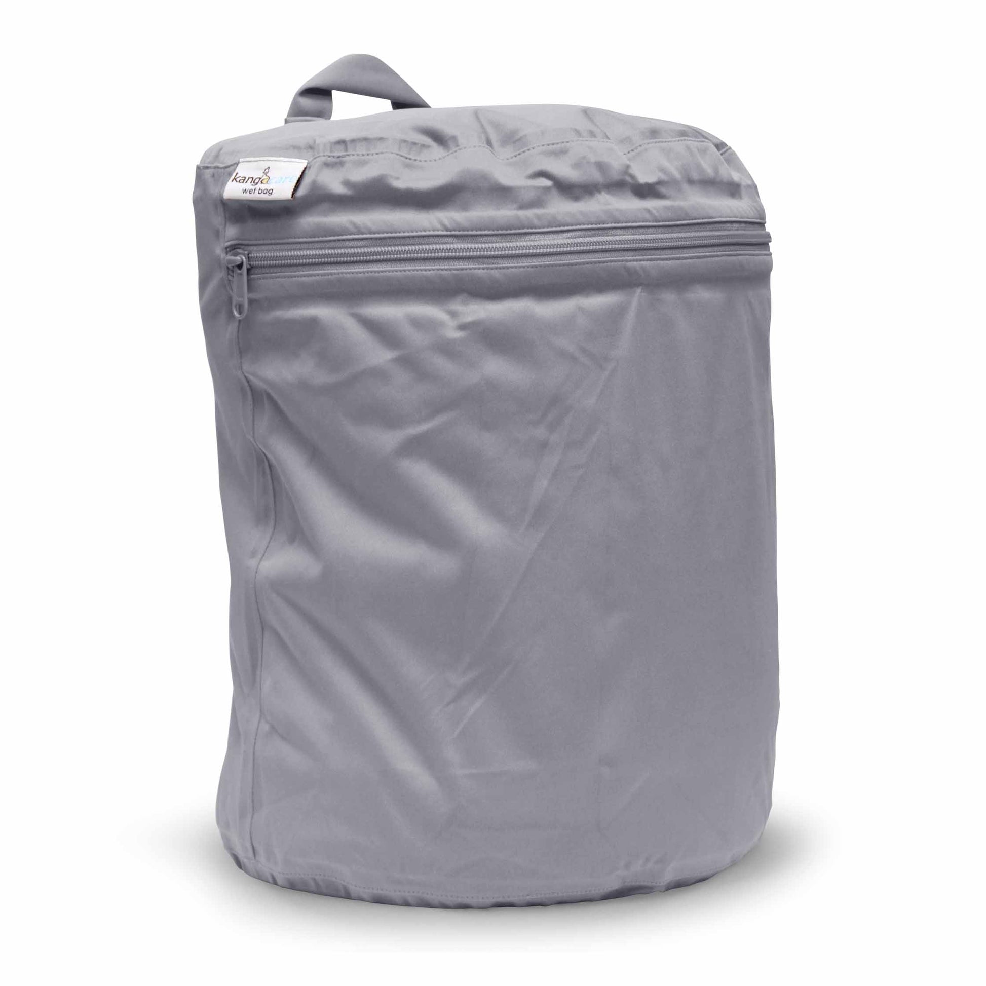 Introducing Platinum Wet Bags - A classic, simple, light gray color. Kanga Care Wet Bags are a standard size wet bag, except instead of being flat (like an envelope), they are HALF MOON shaped to allow more volume. This design is EXCLUSIVE to Kanga Care. This wet bag will hold up to 12 to 15 diapers and inserts. The Kanga Care Wet Bags have color matching, heavy duty zippers that are easy to grab. The zipper is placed on the front so the top of the bag functions as a lid. There is a strap on top that can be opened by an industrial strength snap so that the bag can be attached to a stroller handle, door knob, or other ideal hanging place. To clean, machine wash with your diapers or other soiled items. Tumble dry low or hang dry. Visit www.kangacare.com for further information. Kanga Care uses a water resistant polyester TPU which is solvent-free polyester fabric that has been laminated with a thermoplastic polyurethane using a heat bonding process, not chemicals. This process is low in toxicity and is better for the natural environment then traditional PUL.