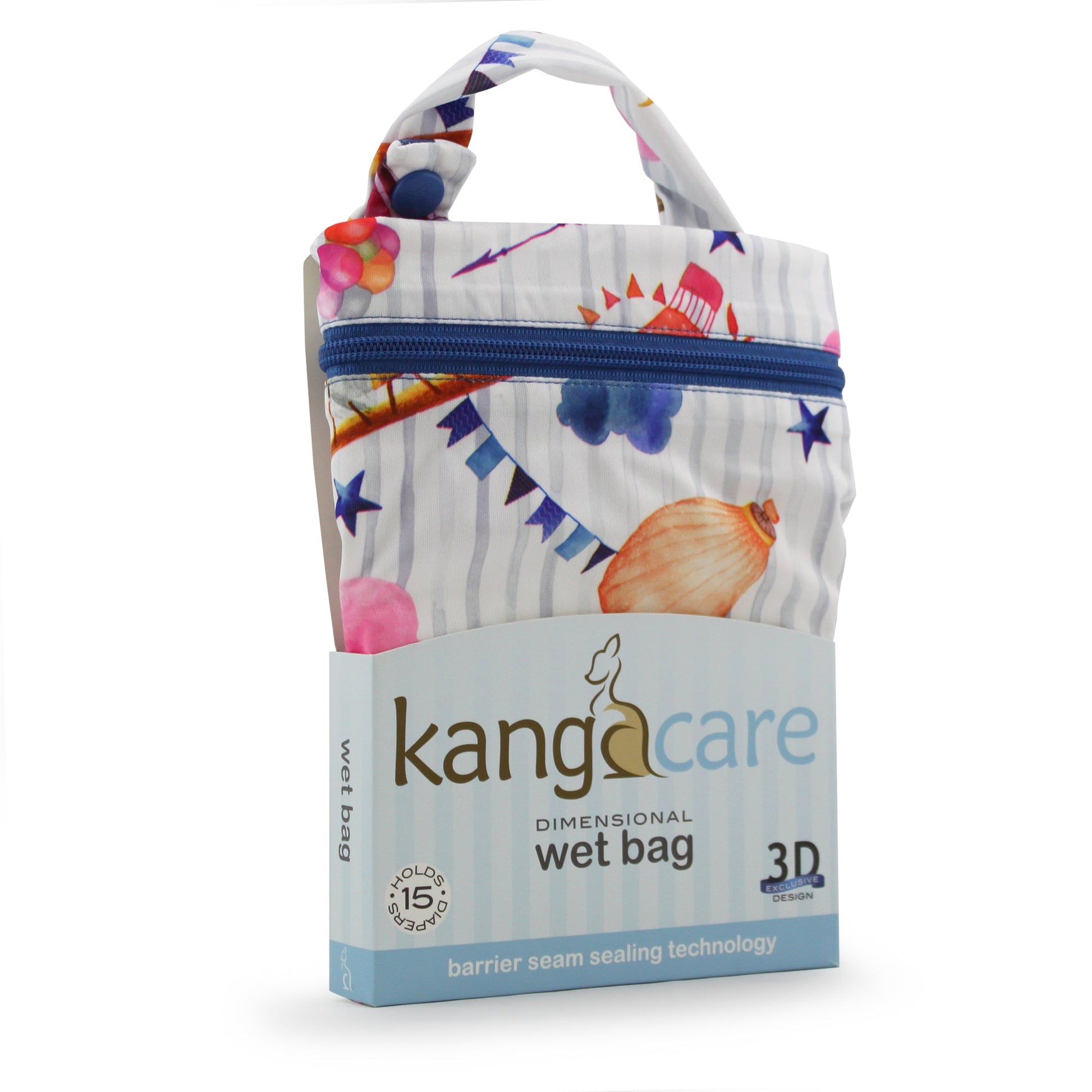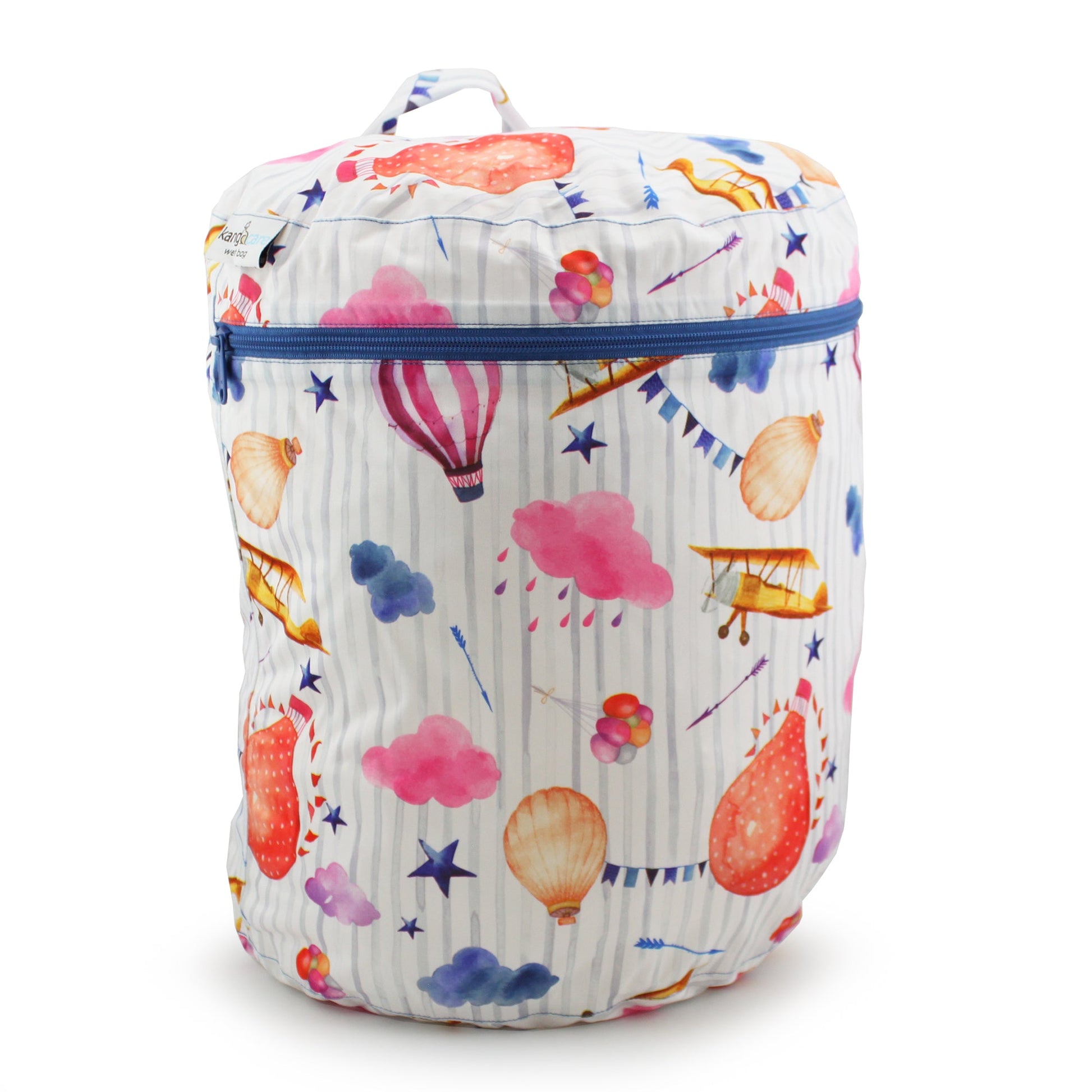 Take flight with Soar Wet Bags - a fanciful and adorable aeronautical print introduced to Kanga Care in 2017! Kanga Care Wet Bags are a standard size wet bag, except instead of being flat (like an envelope), they are HALF MOON shaped to allow more volume. This design is EXCLUSIVE to Kanga Care. This wet bag will hold up to 12 to 15 diapers and inserts. The Kanga Care Wet Bags have color matching, heavy duty zippers that are easy to grab. The zipper is placed on the front so the top of the bag functions as a lid. There is a strap on top that can be opened by an industrial strength snap so that the bag can be attached to a stroller handle, door knob, or other ideal hanging place. To clean, machine wash with your diapers or other soiled items. Tumble dry low or hang dry. Visit www.kangacare.com for further information. Kanga Care uses a water resistant polyester TPU which is solvent-free polyester fabric that has been laminated with a thermoplastic polyurethane using a heat bonding process, not chemicals. This process is low in toxicity and is better for the natural environment then traditional PUL.