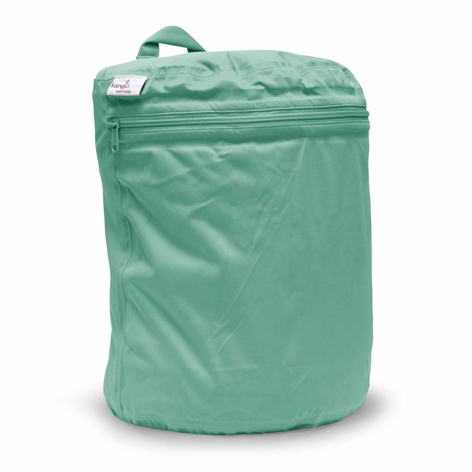 Introducing Sweet Wet Bags - A classic, simple, mint green color. Kanga Care Wet Bags are a standard size wet bag, except instead of being flat (like an envelope), they are HALF MOON shaped to allow more volume. This design is EXCLUSIVE to Kanga Care. This wet bag will hold up to 12 to 15 diapers and inserts. The Kanga Care Wet Bags have color matching, heavy duty zippers that are easy to grab. The zipper is placed on the front so the top of the bag functions as a lid. There is a strap on top that can be opened by an industrial strength snap so that the bag can be attached to a stroller handle, door knob, or other ideal hanging place. To clean, machine wash with your diapers or other soiled items. Tumble dry low or hang dry. Visit www.kangacare.com for further information. Kanga Care uses a water resistant polyester TPU which is solvent-free polyester fabric that has been laminated with a thermoplastic polyurethane using a heat bonding process, not chemicals. This process is low in toxicity and is better for the natural environment then traditional PUL.