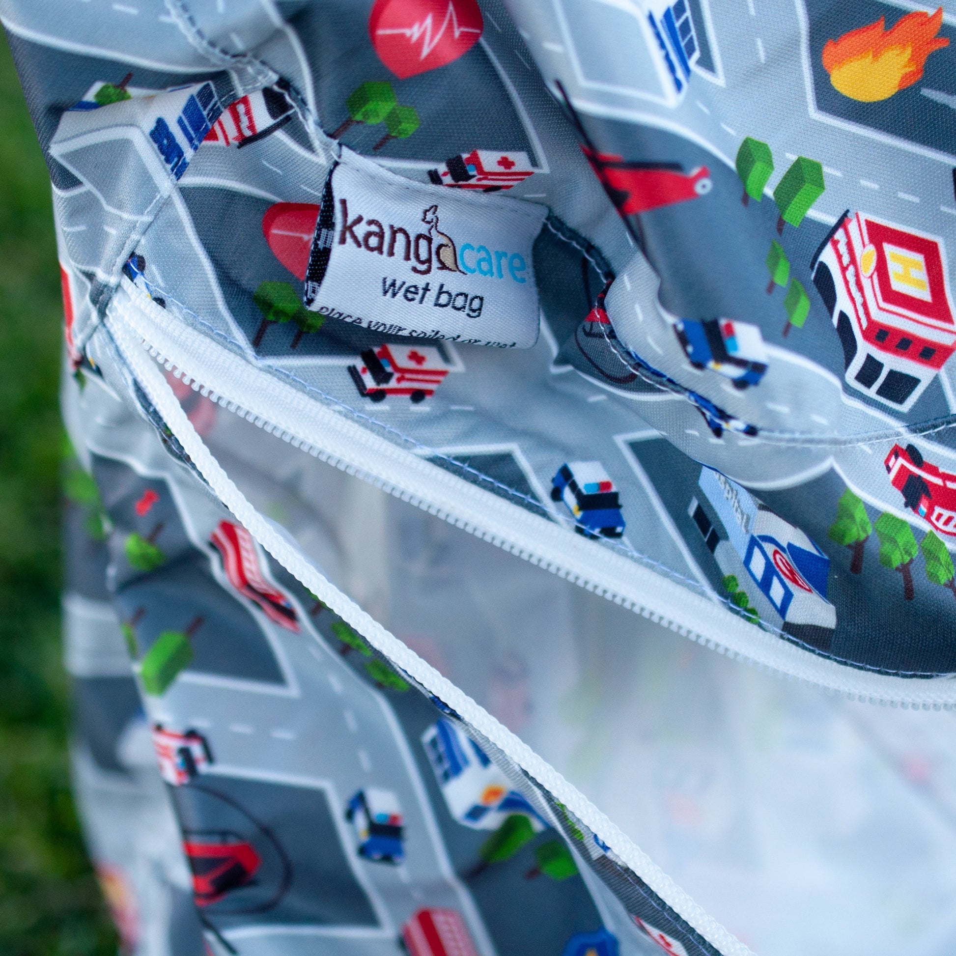 Meet WeeHoo- and join us in sharing respect for our public service workers. The red zipper honors Firefighters. Kanga Care Wet Bags are a standard size wet bag, except instead of being flat (like an envelope), they are HALF MOON shaped to allow more volume. This design is EXCLUSIVE to Kanga Care. This wet bag will hold up to 12 to 15 diapers and inserts. The Kanga Care Wet Bags have color matching, heavy duty zippers that are easy to grab. The zipper is placed on the front so the top of the bag functions as a lid. There is a strap on top that can be opened by an industrial strength snap so that the bag can be attached to a stroller handle, door knob, or other ideal hanging place. To clean, machine wash with your diapers or other soiled items. Tumble dry low or hang dry. Visit www.kangacare.com for further information. Kanga Care uses a water resistant polyester TPU which is solvent-free polyester fabric that has been laminated with a thermoplastic polyurethane using a heat bonding process, not chemicals. This process is low in toxicity and is better for the natural environment then traditional PUL.