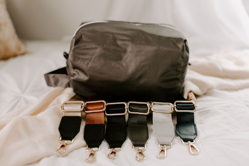 - Optional Removable Shoulder Strap Available in Black, Brown, Khaki, Navy, Silver, or Charcoal.
