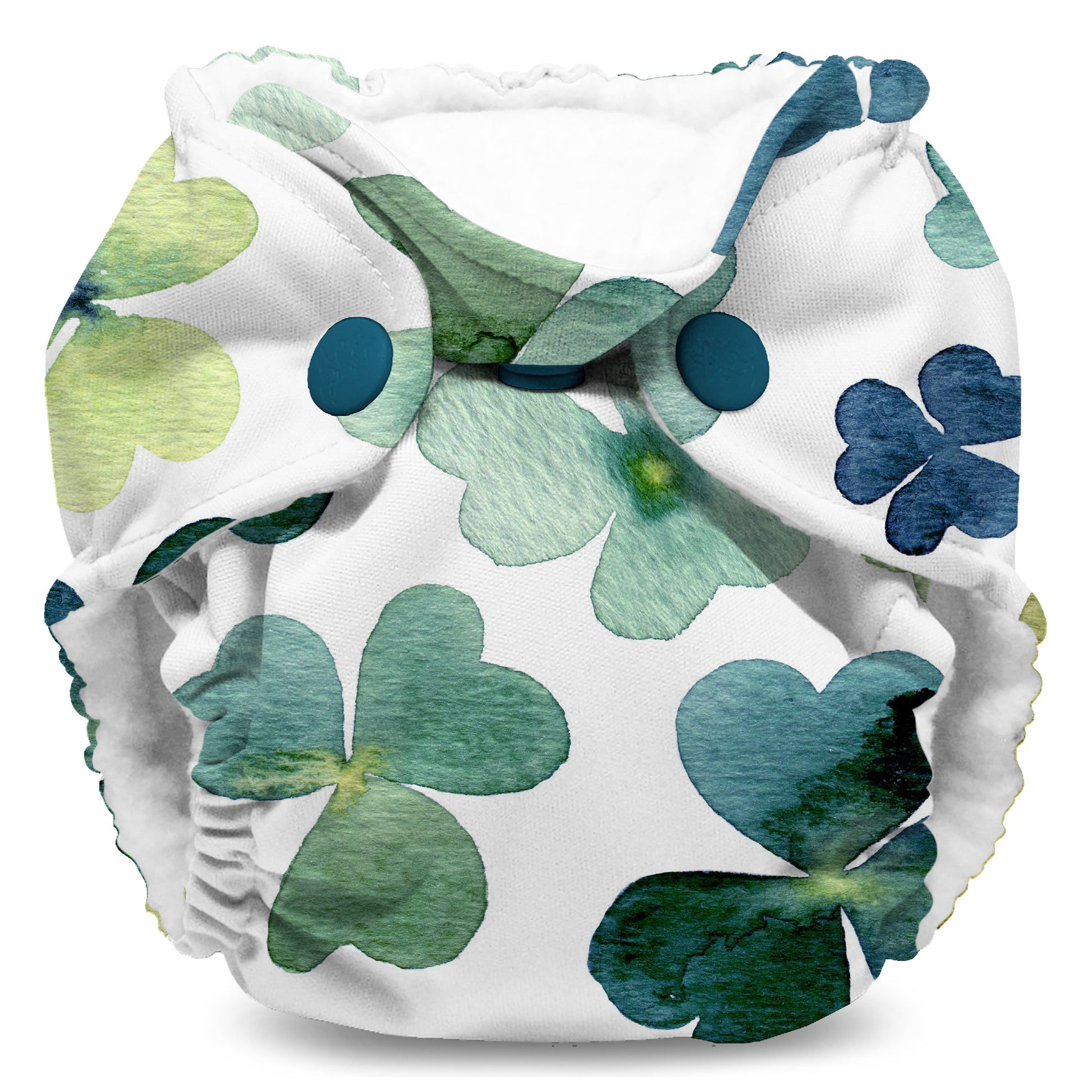 Meet Clover Lil Joey - The luckiest of patterns, introduced in 2020 and added to the standard lineup. The Lil Joey is a newborn diaper designed to fit from approximately 4-12lbs. Kanga Care brand cloth diapers are the ORIGINAL and ONLY cloth diapers uniquely designed with the patented leak protection technology of dual inner gussets. The inside of each diaper is designed with 2 gentle inner gussets, a double barrier that channels each leg. There is no chance of escape for even the messiest of messes! The Lil Joey takes special care with a snap down front for sensitive cord care during those first precious days.