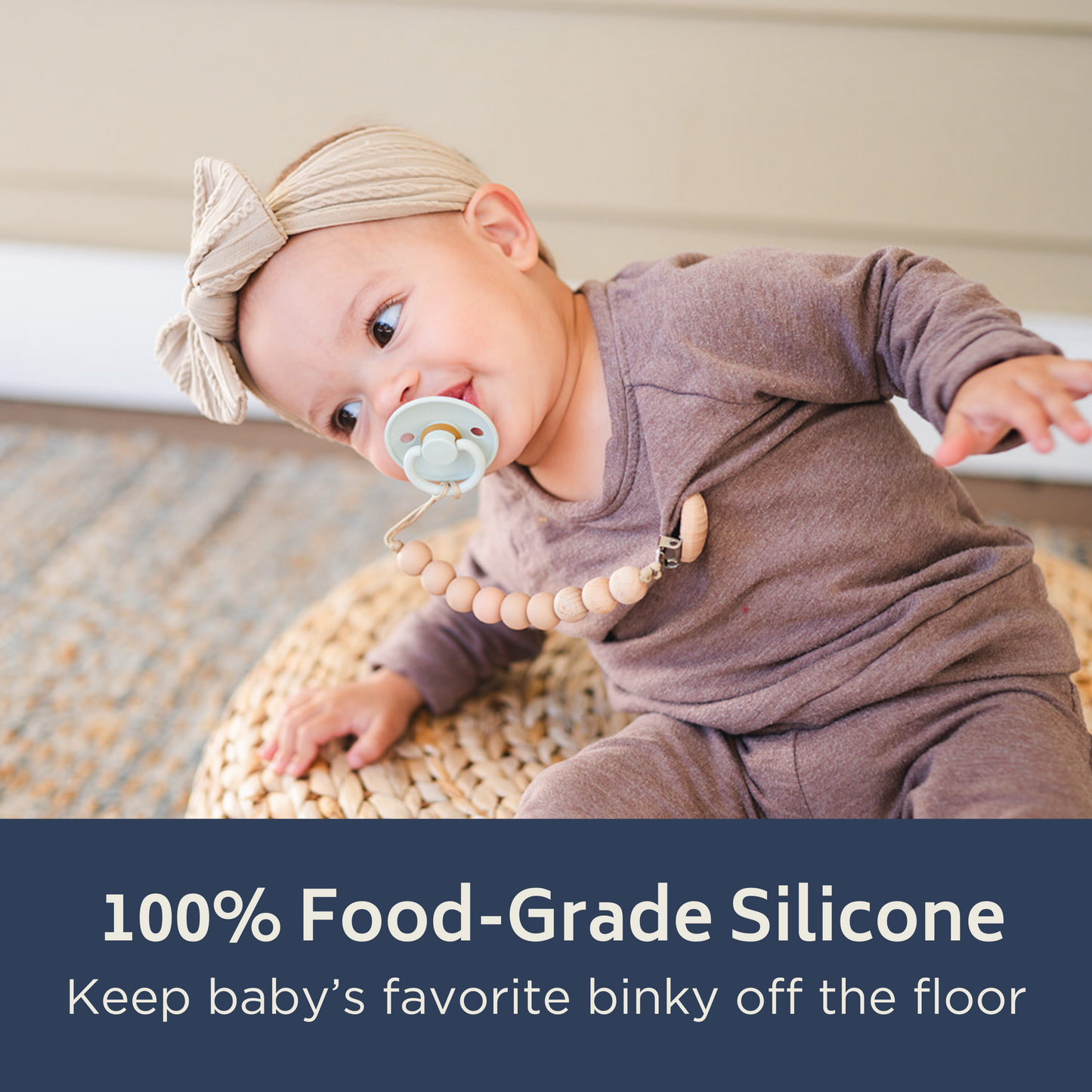 What's Included: 1 Beaded Wooden & Silicone Pacifier Clip