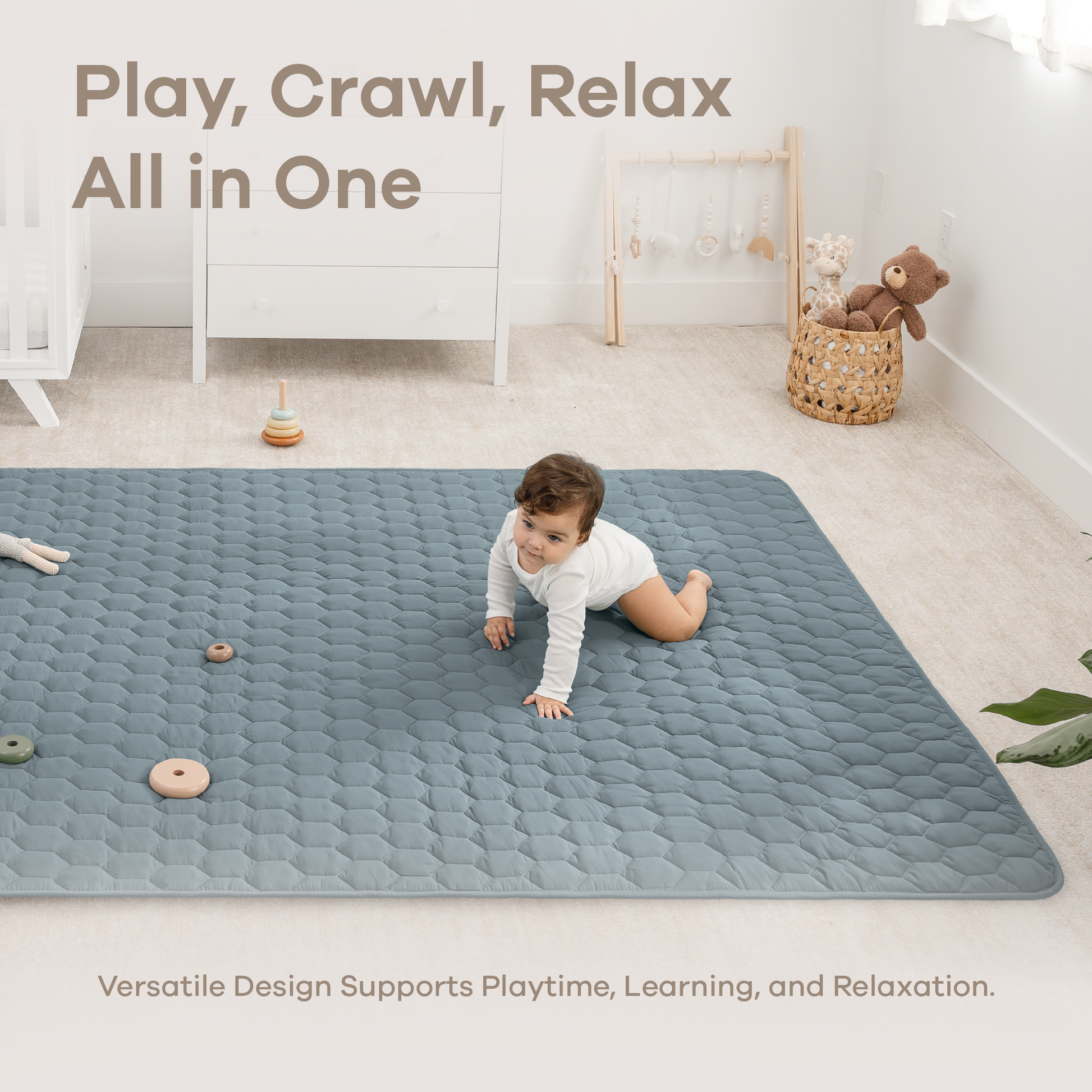 - Quilted for Extra Padding: This thick baby play mat comes with a quilted top providing added cushioning, making it more comfortable for your child to roll, crawl, and play on the mat.