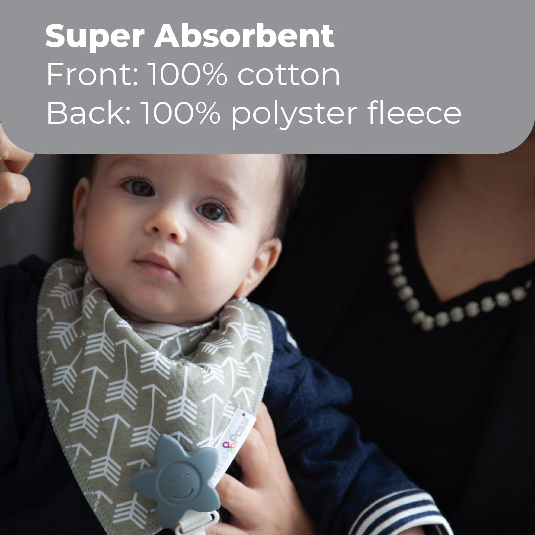 Primo Passi Bandana Bibs beat traditional bibs with their new sleek design and simple adjustable snap closure. Extremely comfortable and super-soft, manufactured with 100% cotton fabric.