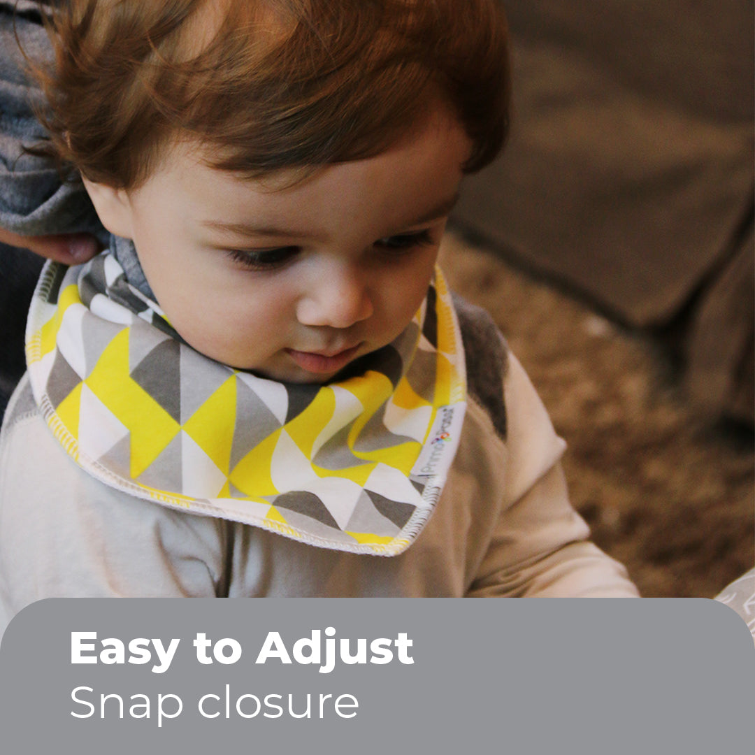 Fashion meets feeding time in style! Our modern and functional Primo Passi - Gray and Yellow, Bandana Bibs are a must have accessory for baby boys and baby girls!
