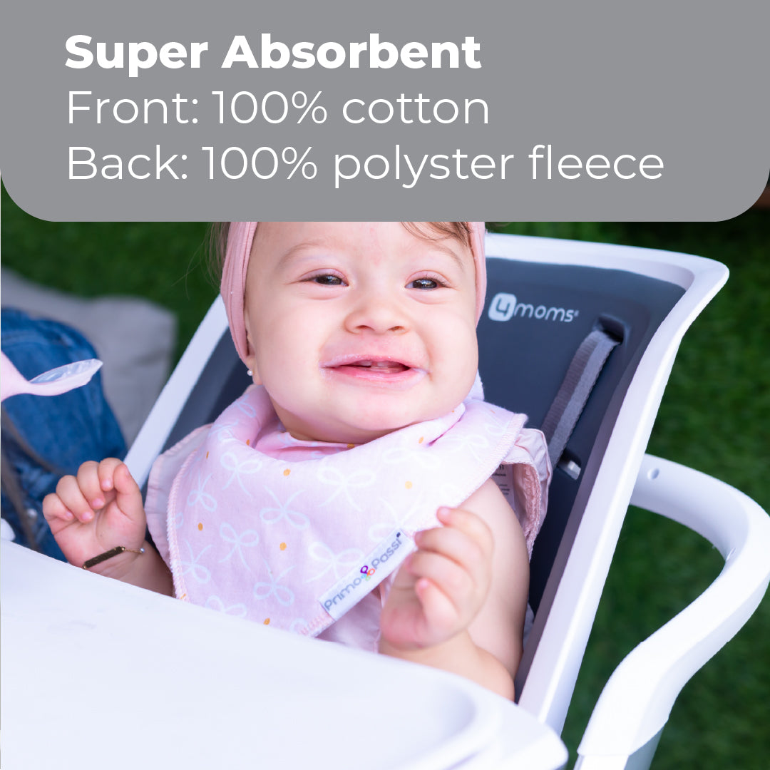 Primo Passi Bandana Bibs beat traditional bibs with their new sleek design and simple adjustable snap closure. Extremely comfortable and super-soft, manufactured with 100% cotton fabric.