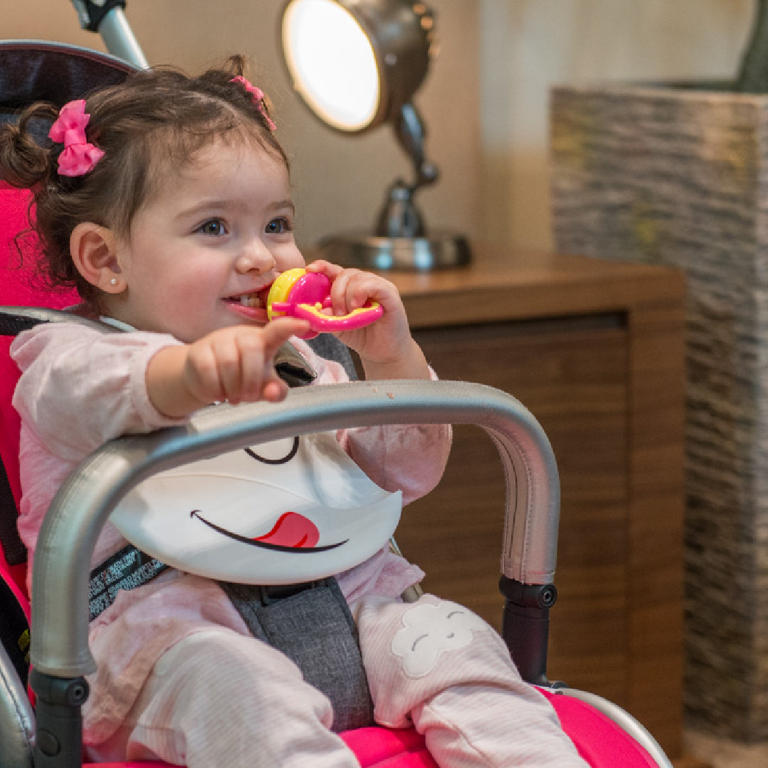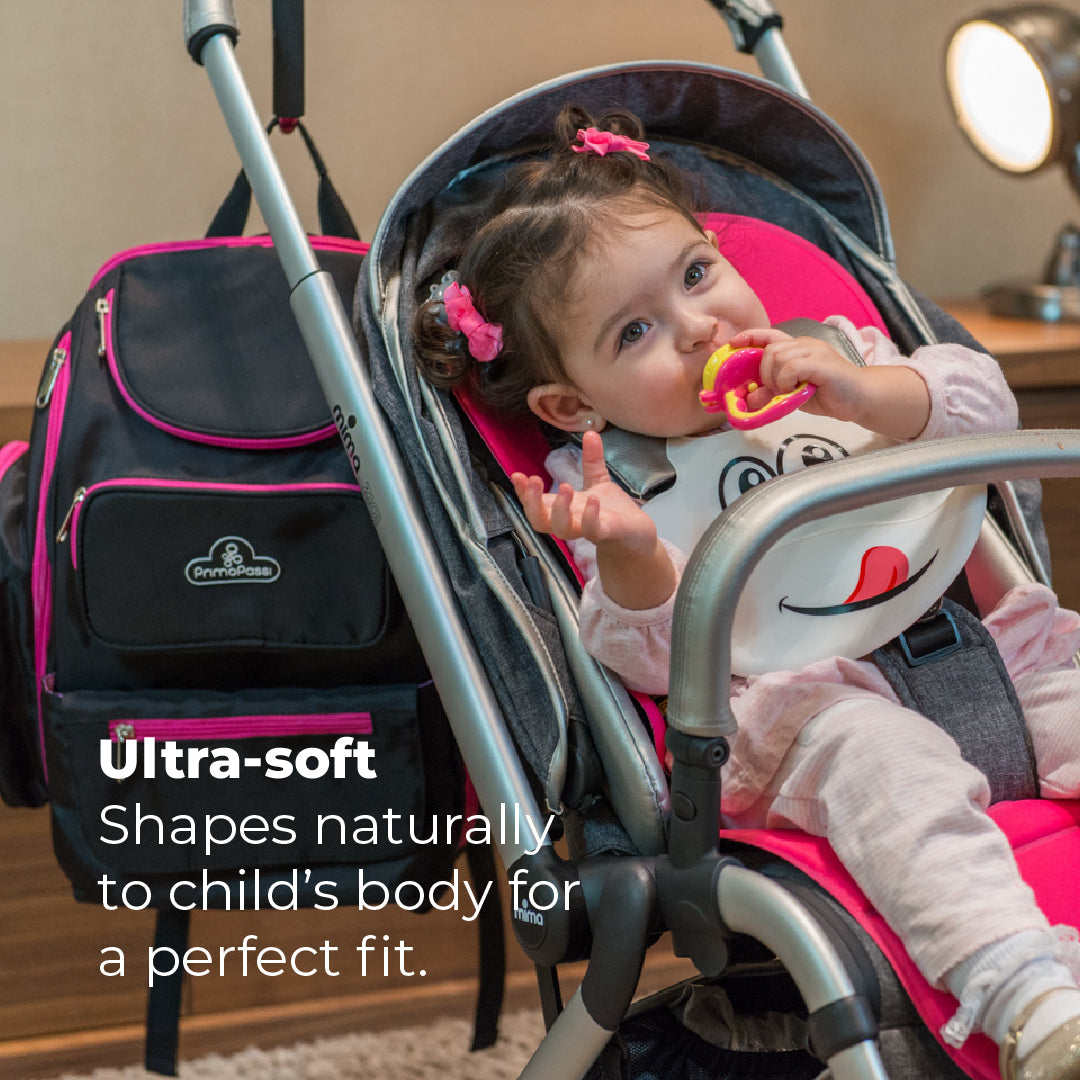 Primo Passi designed a flexible bib that easily fits in any diaper bags or backpacks. Adjustable around the neck, the silicone clasp won't hurt or irritate your baby's skin and will prevent it from being pulled off by your little one.