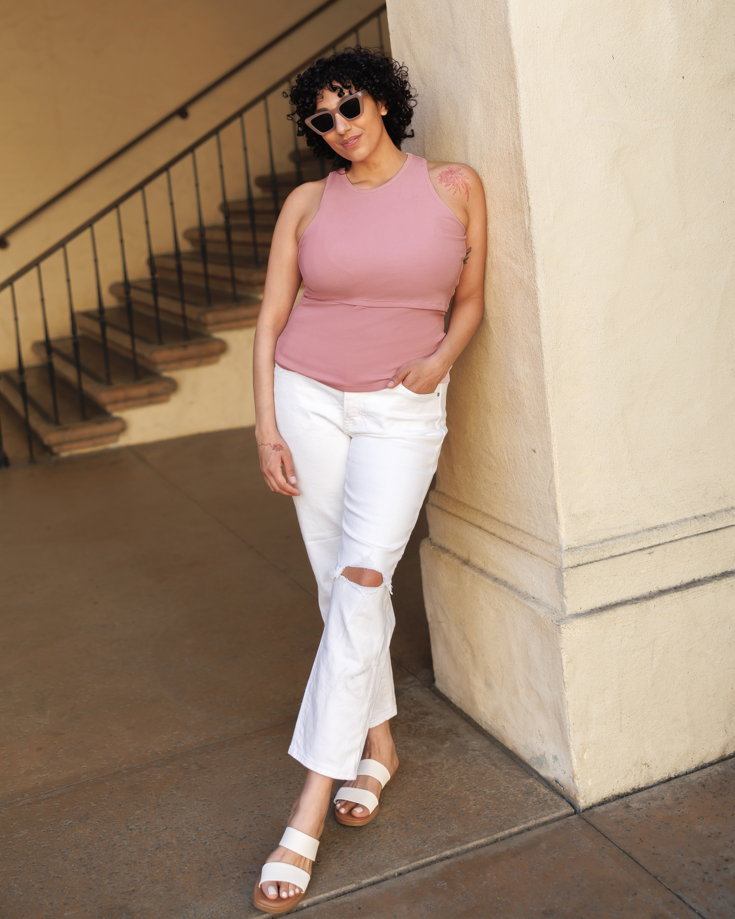 Ribbed Bamboo Racerback Nursing Tank | Light Mauve