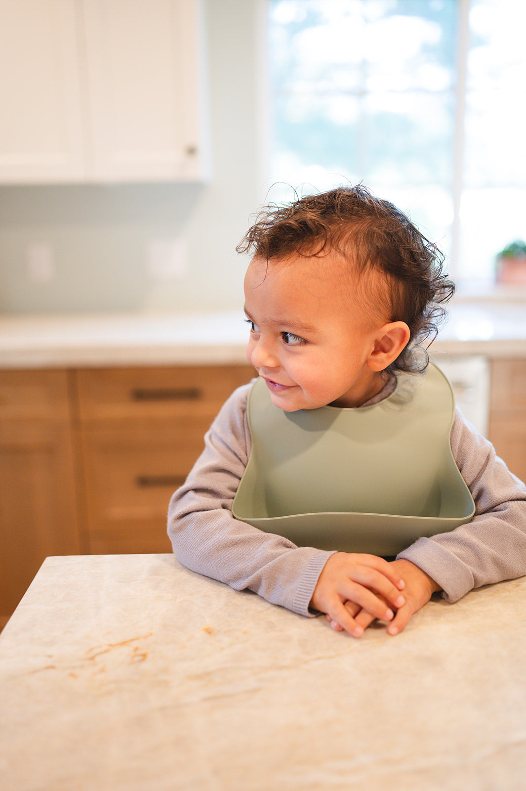 Every baby loves discovering the world around them, but when they're drooling and exploring feeding themselves independently for the first time it can be hard to keep food mess on their clothes. Introducing the silicone bib! Flexible material means you'll be able to easily rinse off your little one after they eat without worrying about ruining a fabric bib. The silicone construction also ensures that this piece will last through each messy meal – just wipe clean with soap and water whenever it gets dirty. Plus, our simple modern design is sure to encourage independent eating, so no more having to worry about whether or not your little one needs help chewing!
