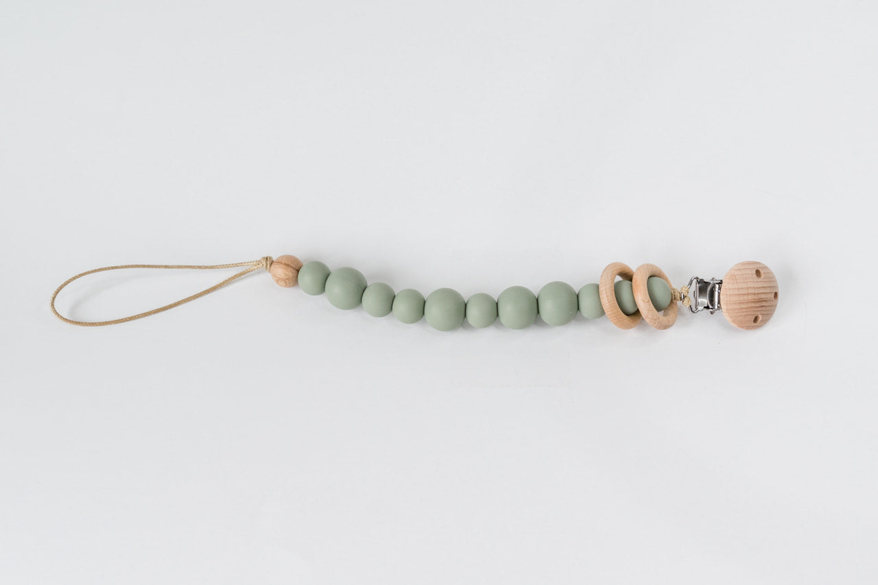 Sage Silicone Bead & Wood Ring Pacifier Clip