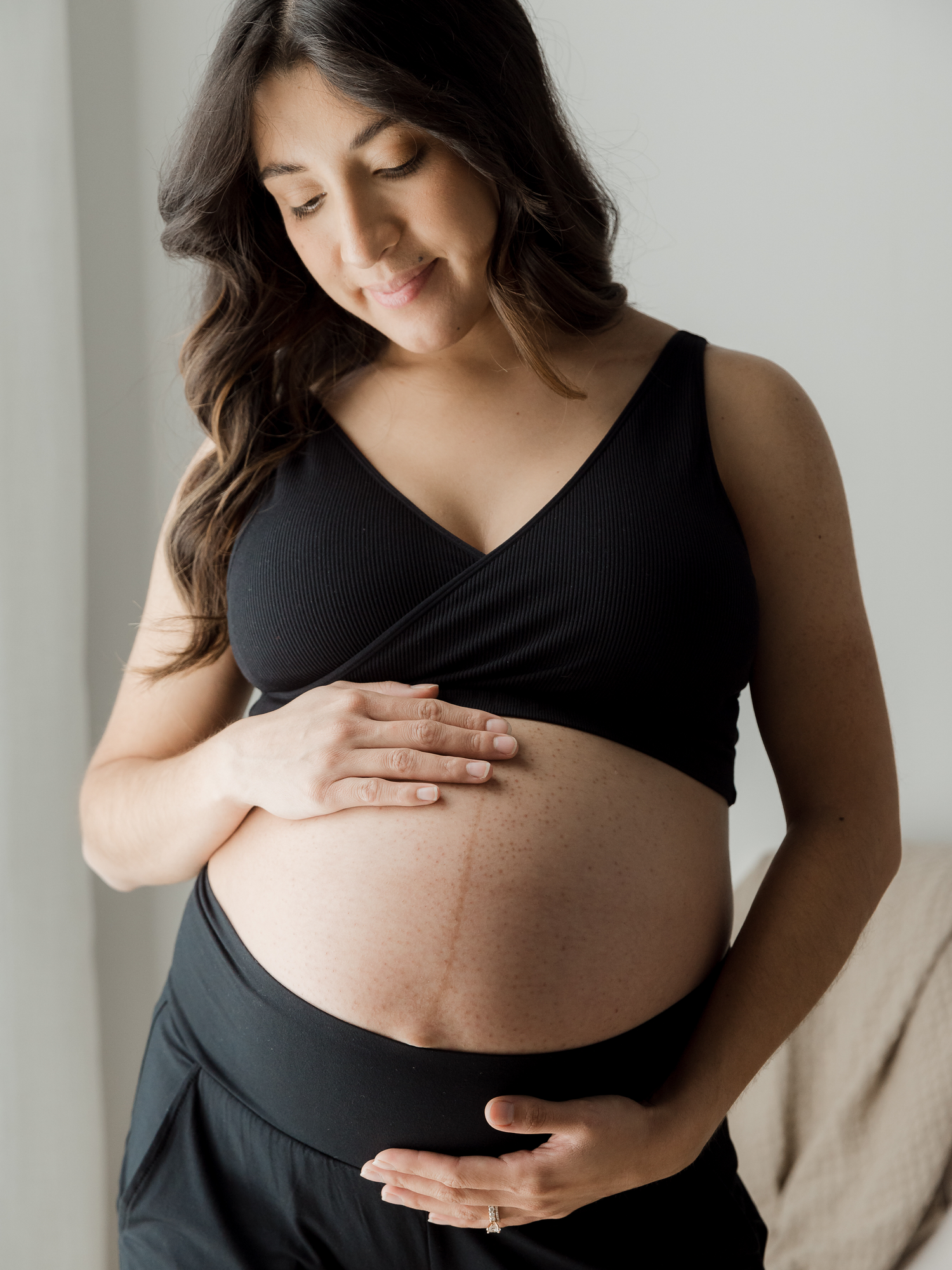 Best-in-class for comfort, before and after baby. You’ll reach for this dreamy pullover bra over and over (trust us!). This ultra-soft bra is perfect for lounging, running errands, and sleeping, and the simple crossover design allows for easy nursing access once your baby arrives.