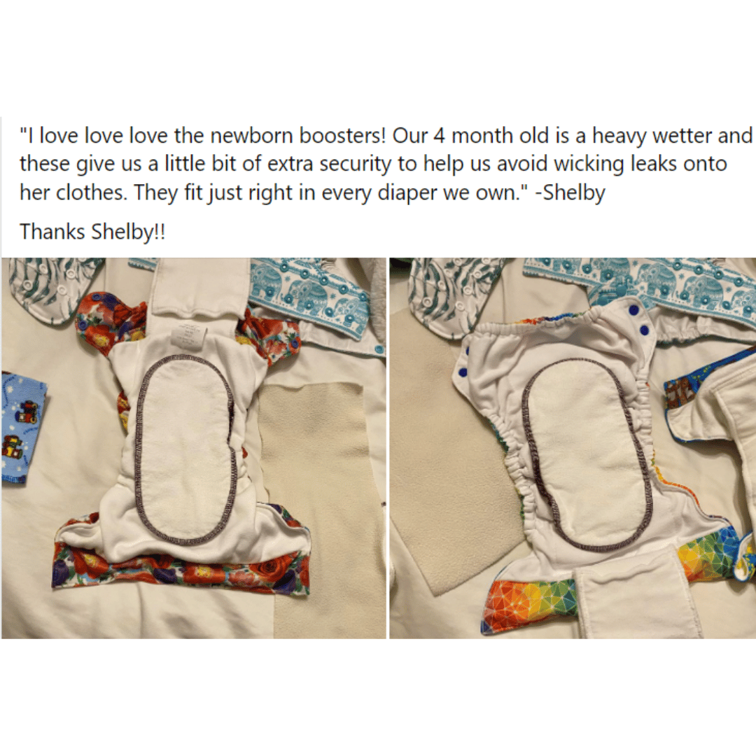 If your newborn is leaking out of everything, these will solve the issue. You may think they are too large when they arrive, however prepping will shrink the fibers and the overall size of the insert. The more you wash it the more absorbent it gets up until 9 or 10 washes. Then it is at full absorbency.