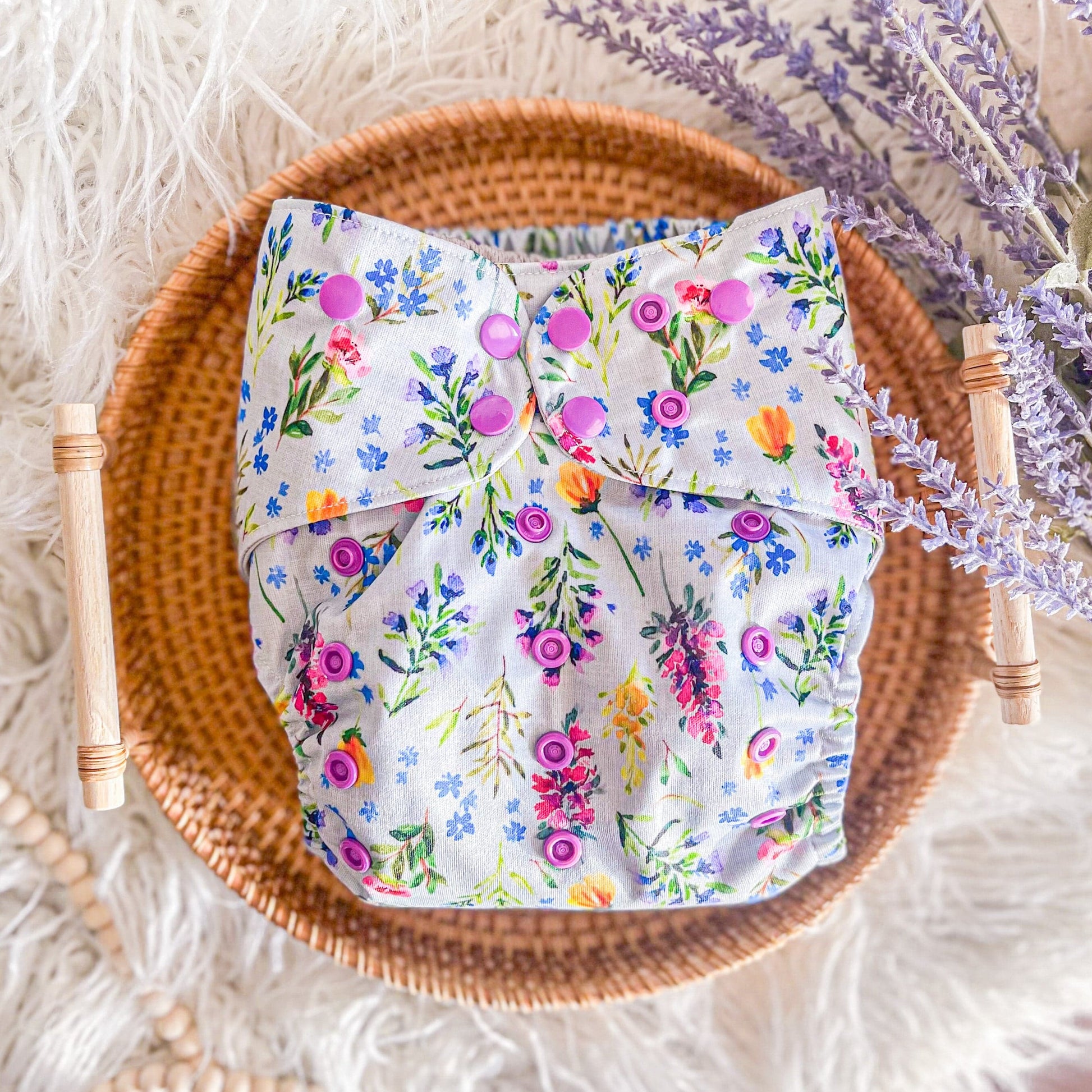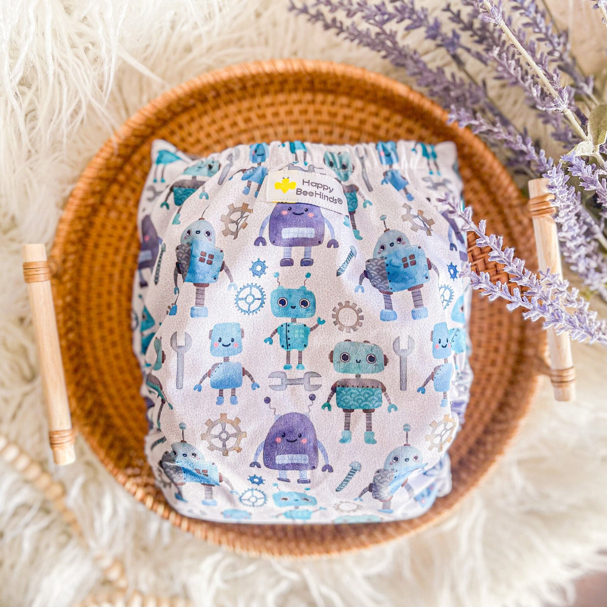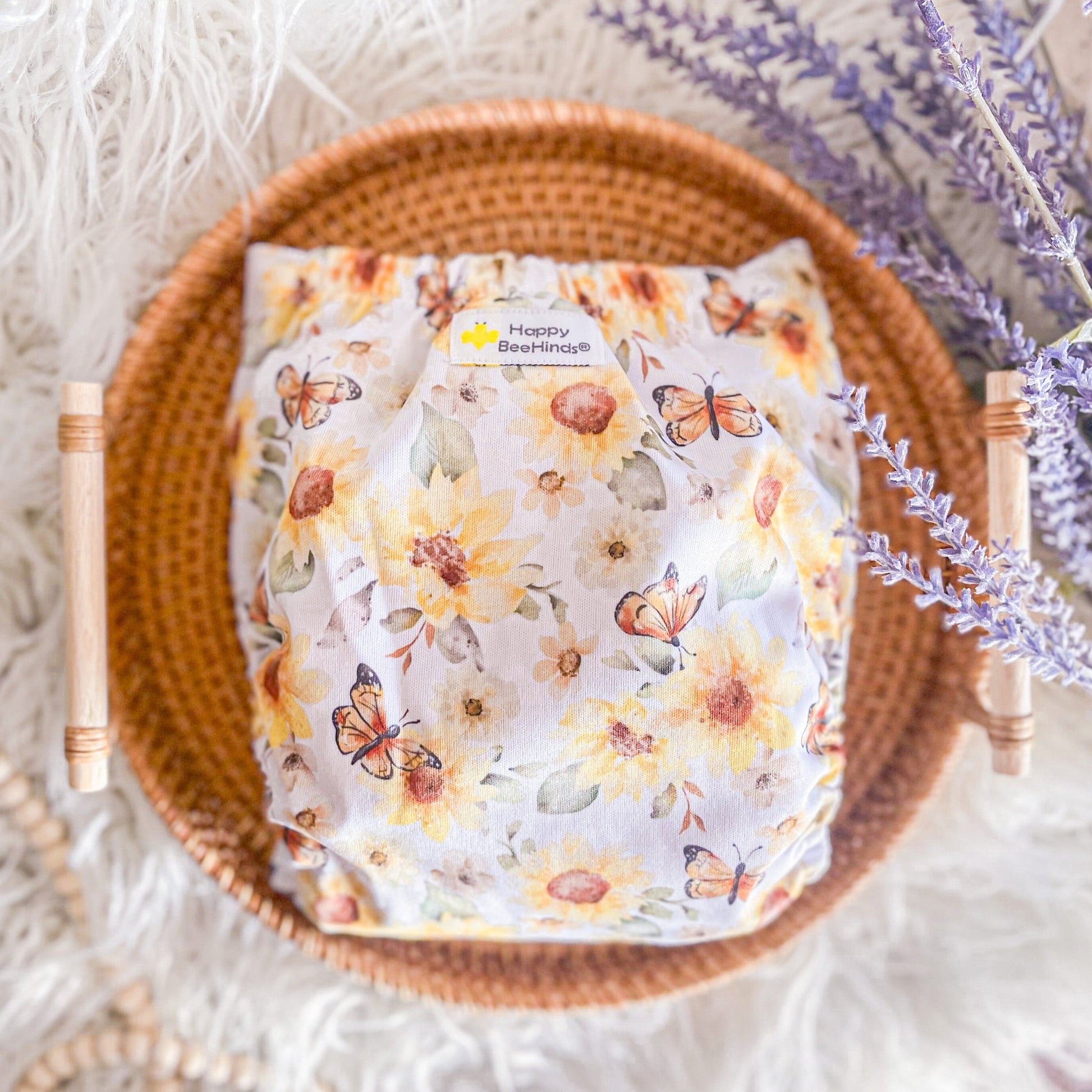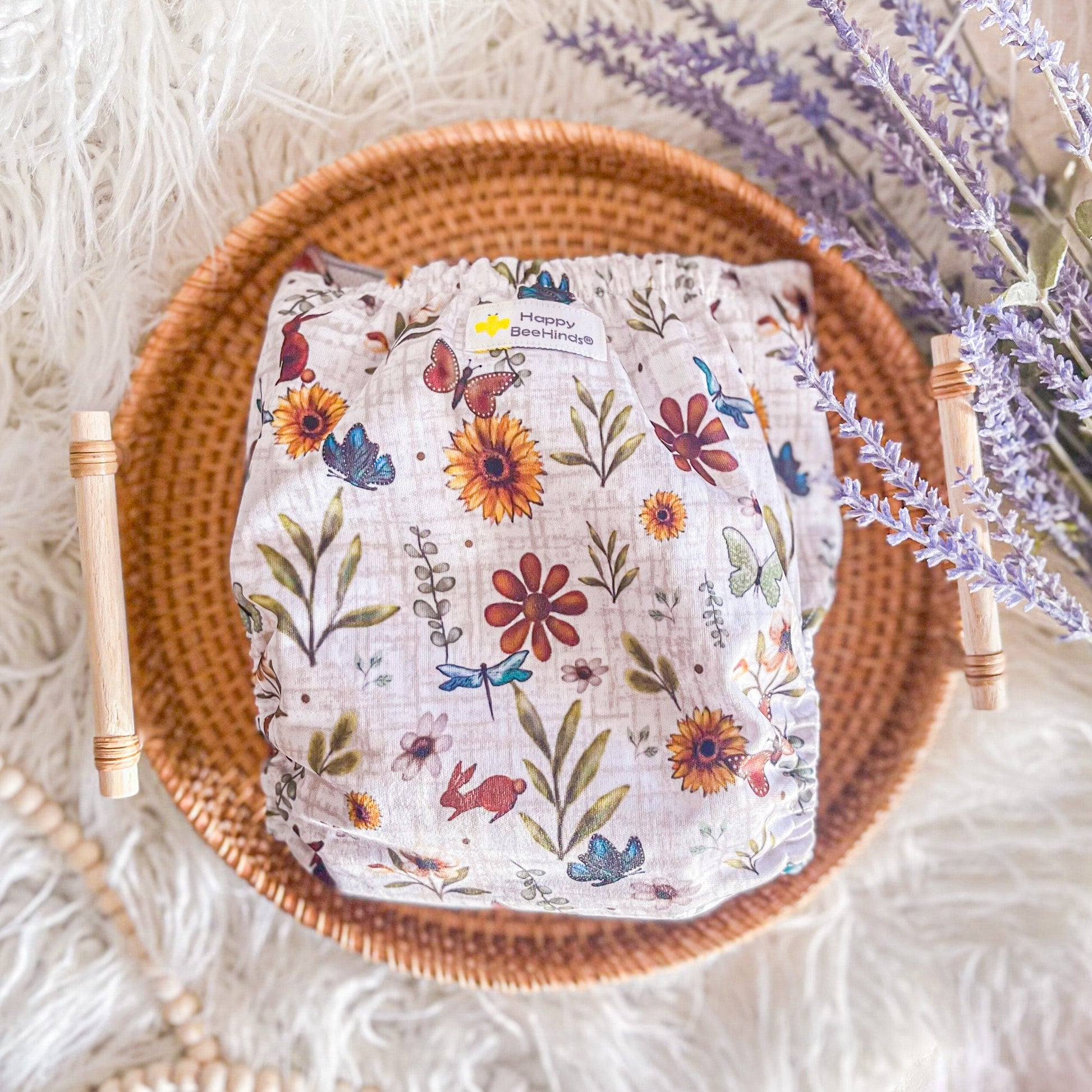 The "Grande" Pocket Diaper by Happy BeeHinds is ready for your little bee-ginner! Thanks to its adjustable three by five rise, it'll keep your little snug from 15 to 75+ lbs