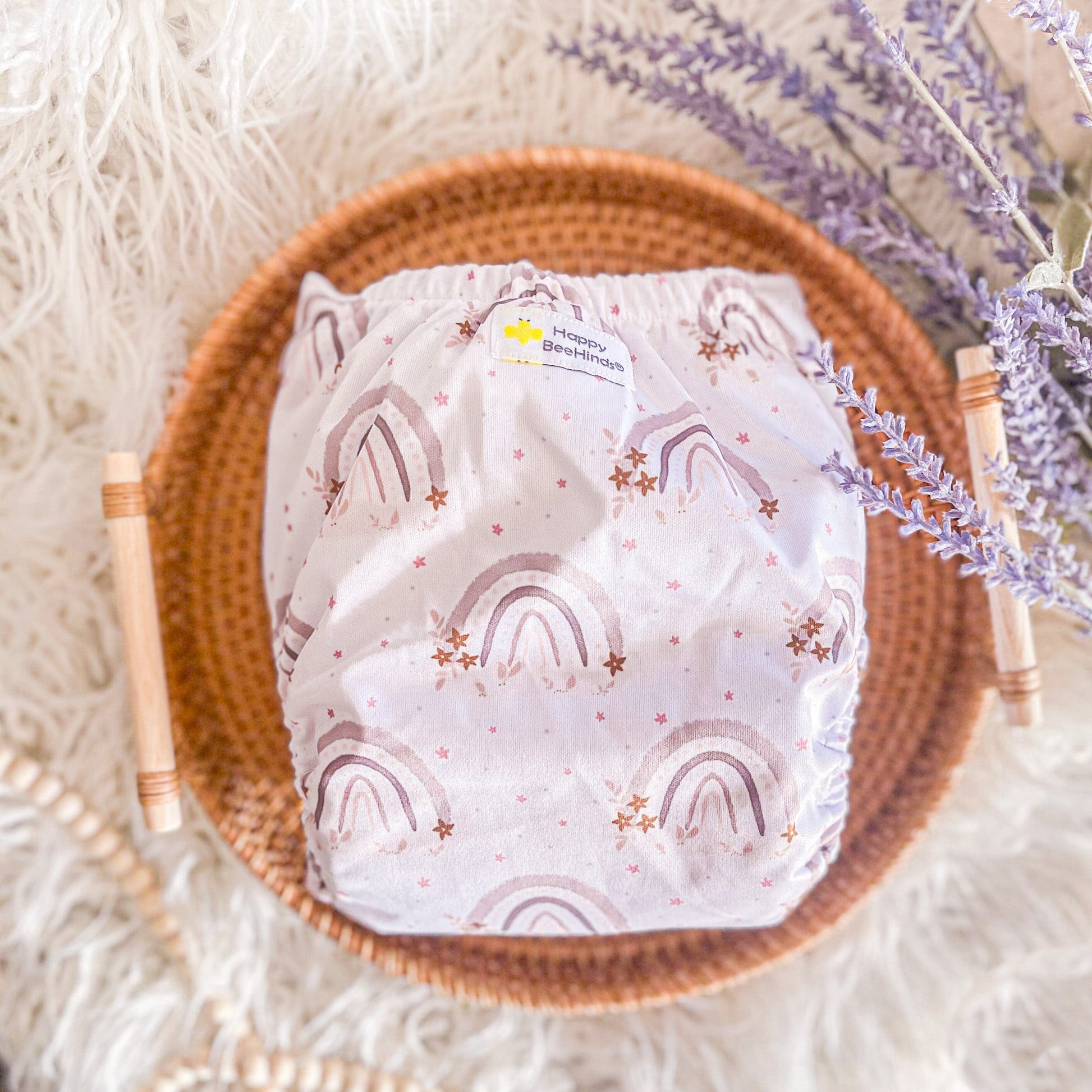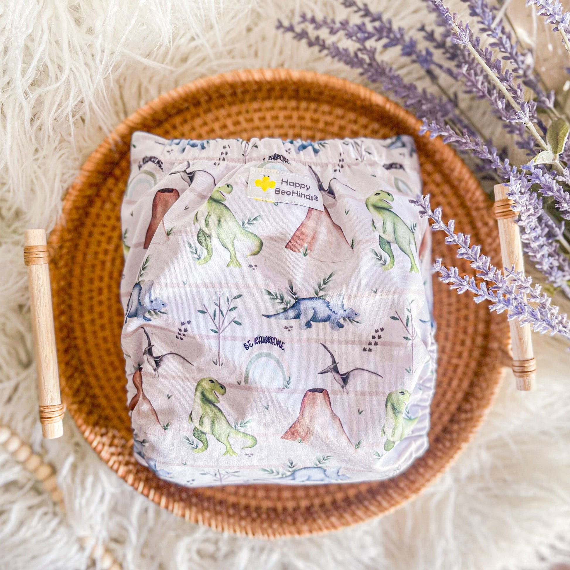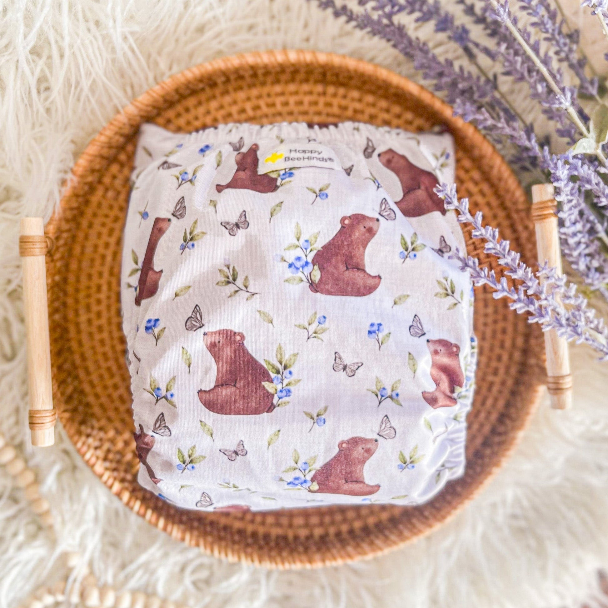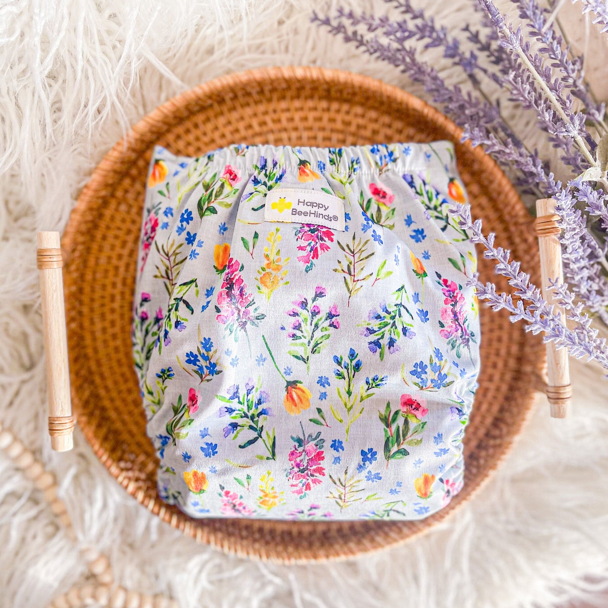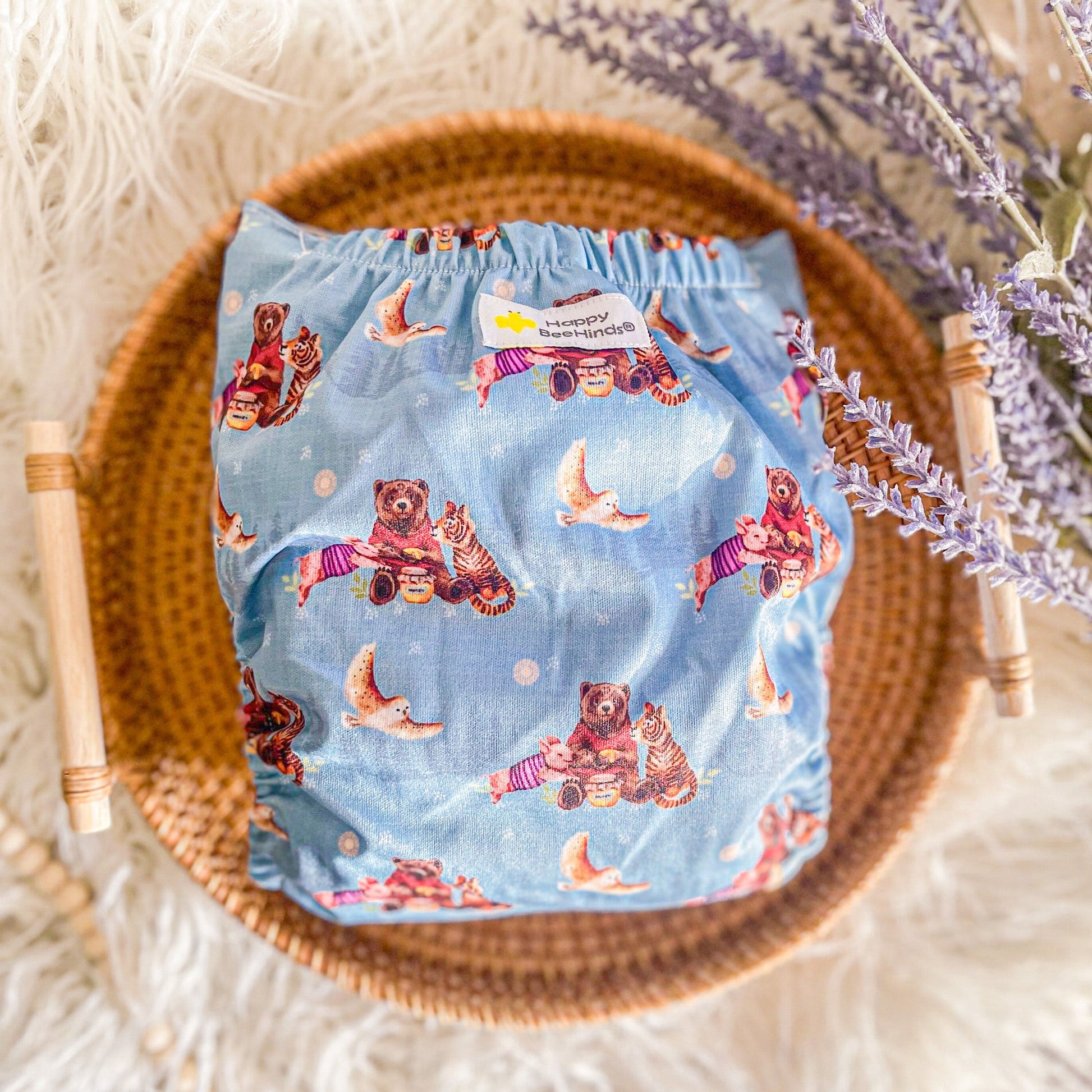 The "Grande" Pocket Diaper by Happy BeeHinds is ready for your little bee-ginner! Thanks to its adjustable three by five rise, it'll keep your little snug from 15 to 75+ lbs
