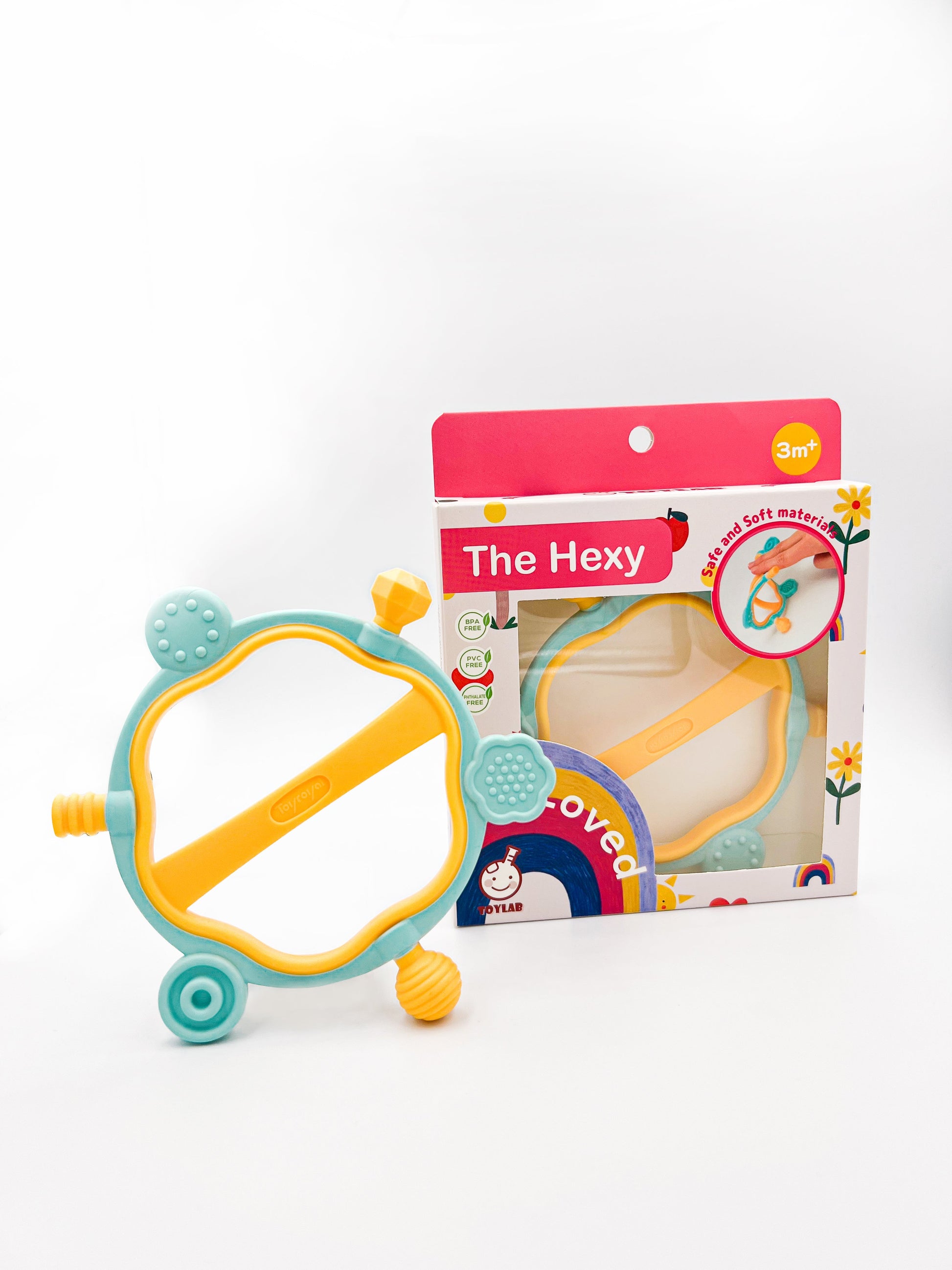 With multiple sensory points and texture, the Hexy is perfect for sore gums to reduce fussiness and discomfort. It is recommended for age 3-month up and perfect for baby shower or newborn gift. The macaroon, bright and cheerful colors are adorable and can be used as teethers or bath toys. The Japanese artisan spirit behind the one-piece construction makes it very easy to clean. This product meets or exceeds ASTM and CPSIA safety regulations.