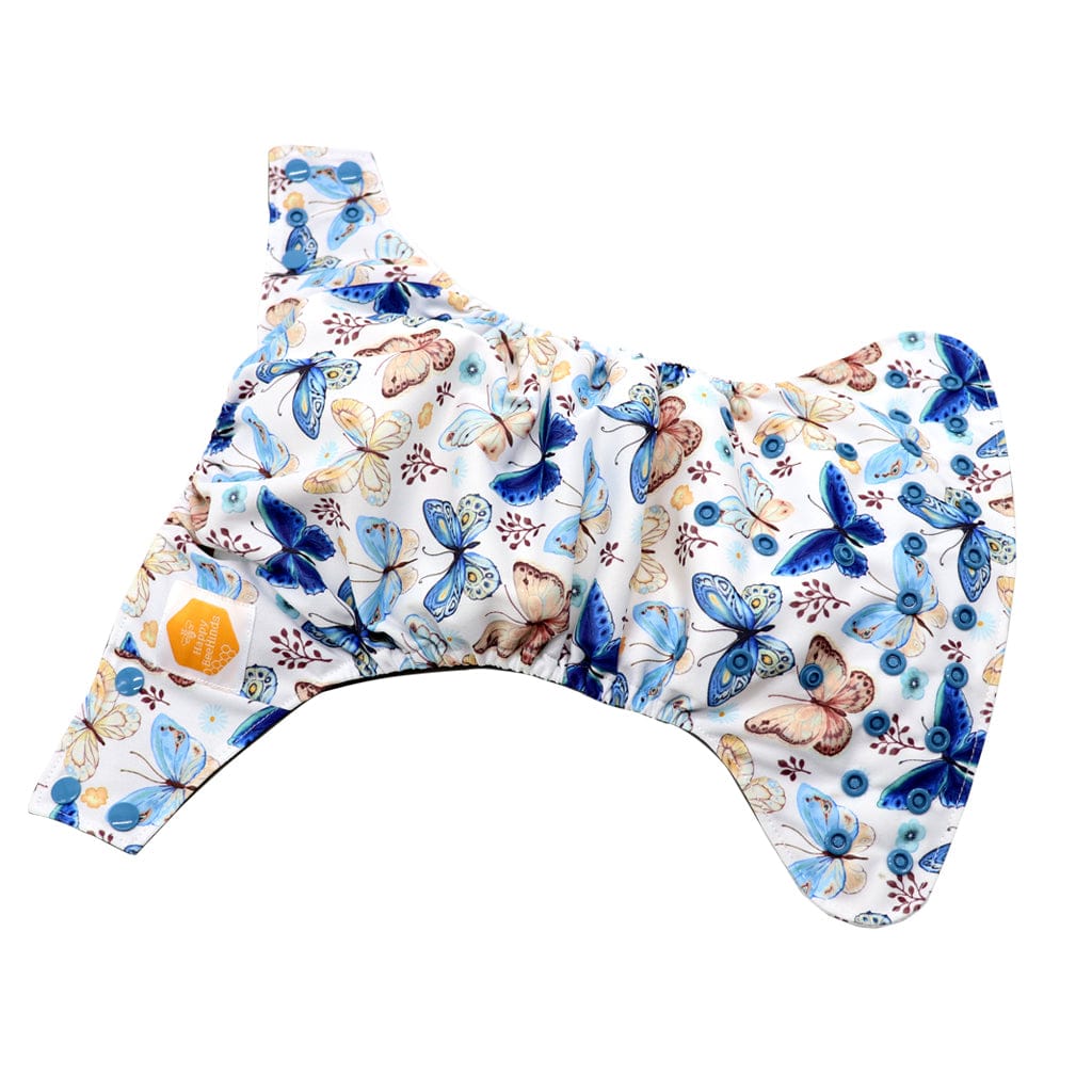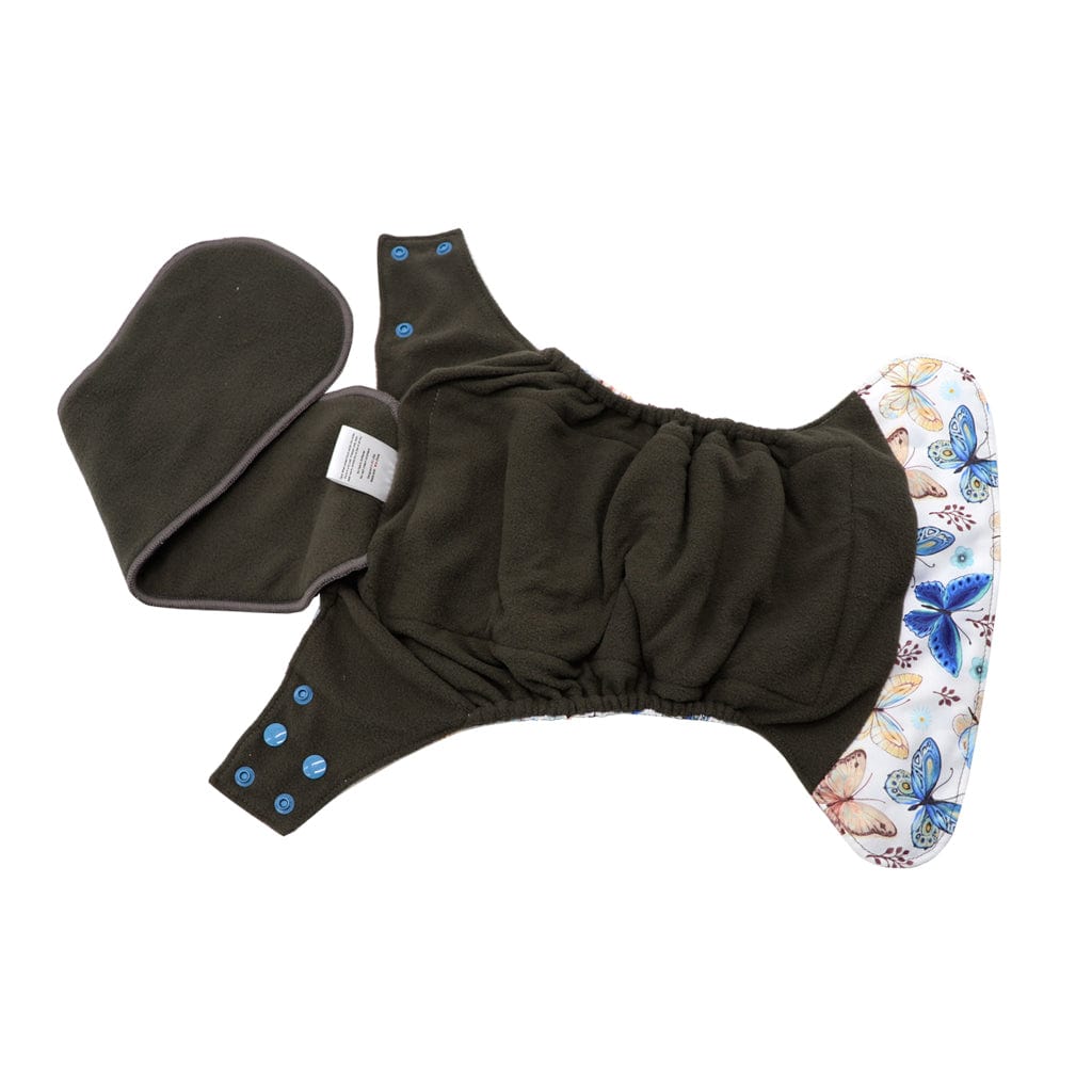 - Outer diaper material is Waterproof PUL fabric (Polyurethane Laminate)