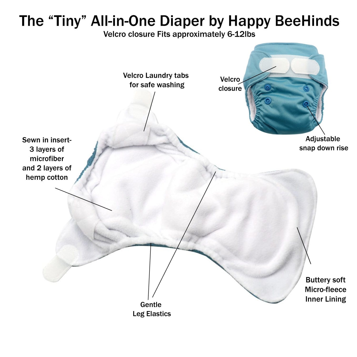 The "Tiny" Newborn All In One Hook & Loop by Happy BeeHinds