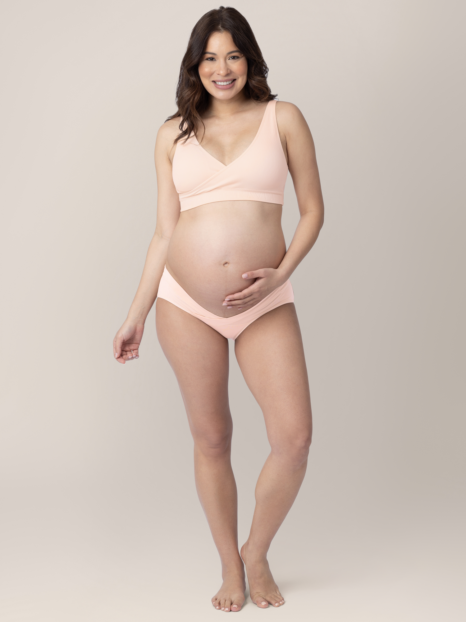 The perfect alternative to granny-panty maternity underwear! The Under-the-Bump Bikini Underwear for maternity and postpartum features stretchy fabric that sits just below your baby bump and naturally conforms to your changing body. Women at all stages of pregnancy love the clever notched design of these maternity panties, which offer full rear coverage with a no-roll waistband.