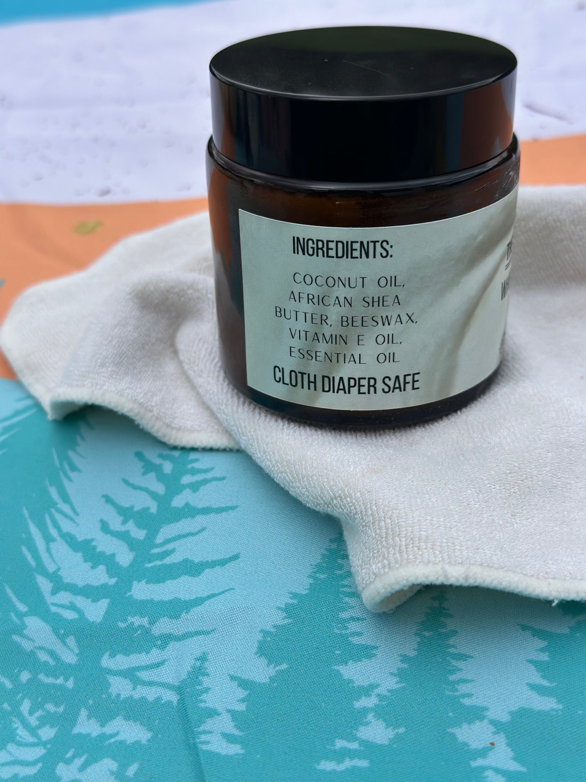 A gentle, nourishing cream made to calm and protect delicate skin—especially in the diaper area. This whipped, easy-to-apply blend is packed with natural, calming ingredients that soothe irritation and support healing. 100% cloth diaper safe.